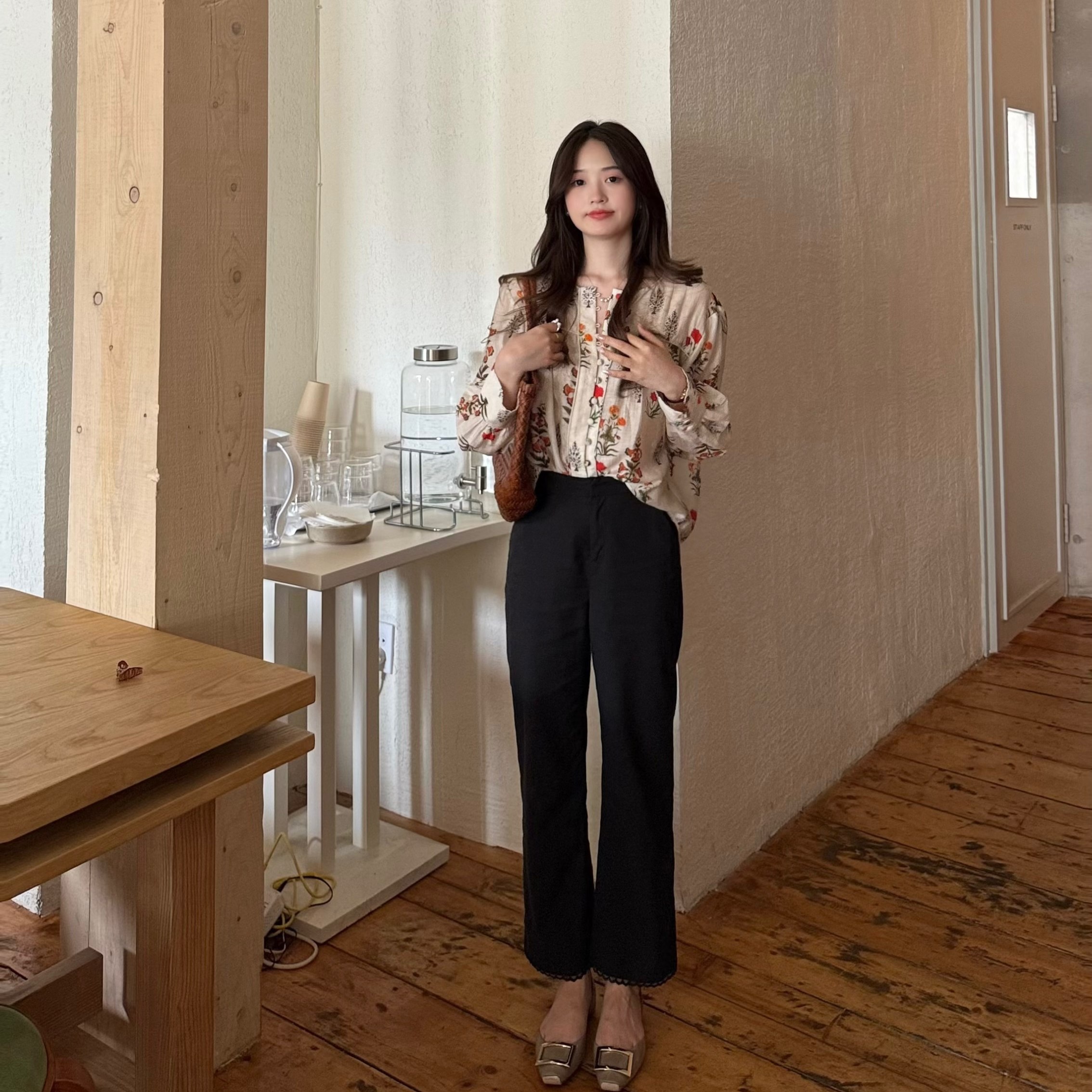 张羞羞 小黑裤3.0/韩系早秋通勤天丝亚麻9分直筒花边休闲裤