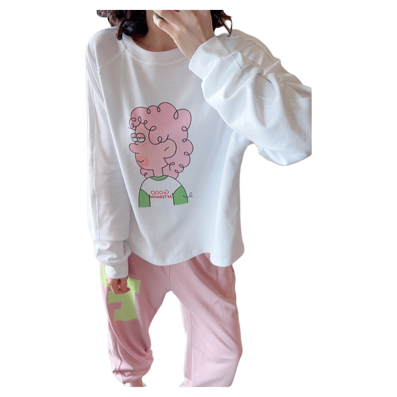 AMYOYOJA春夏新款 波普风格粉发女孩纯棉后背拼接插肩袖百搭T恤女