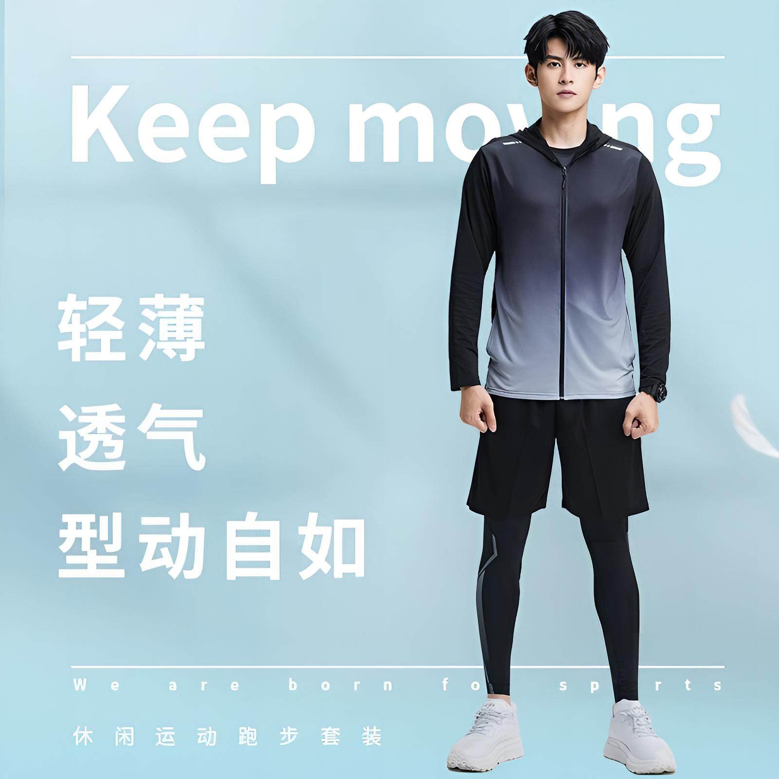 德国运动套装春季款羽毛球男跑步健身衣服晨跑骑行外套紧身速干衣