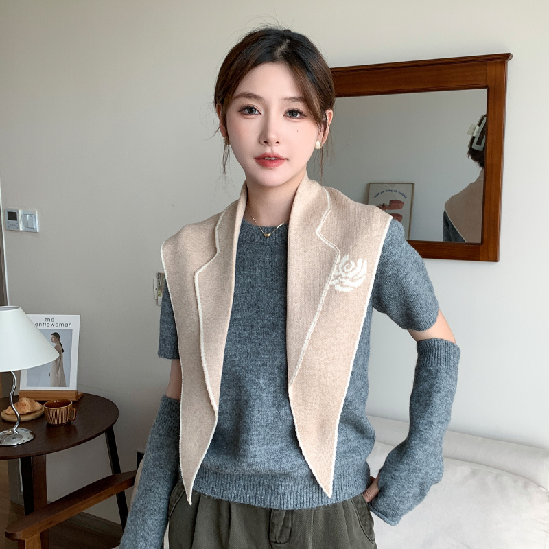 秋微2024坎肩新款假领保暖百搭女氛围感西装领飘带围巾设计假领子