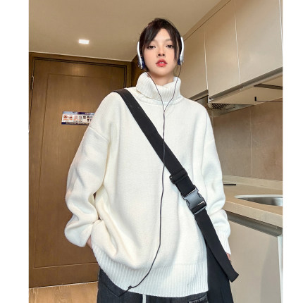 特大码300斤秋冬季慵懒风高领毛衣情侣宽松针织衫外套上衣男女装2