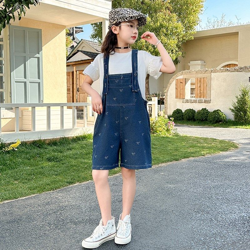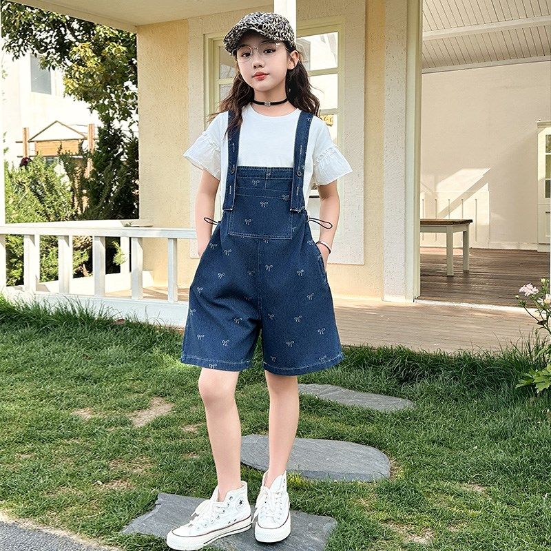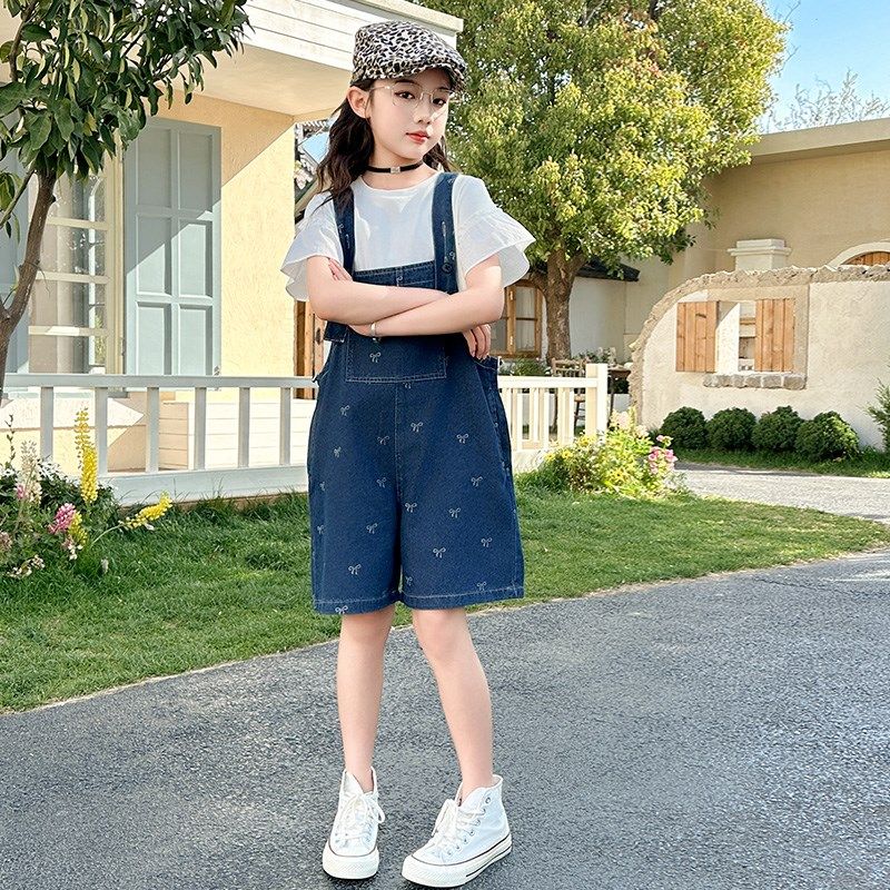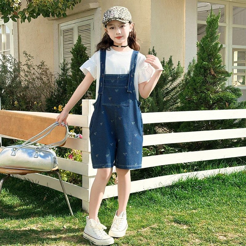 女童夏日穿搭套装2025新款儿童夏季裤子女大童背带短裤夏装两件套