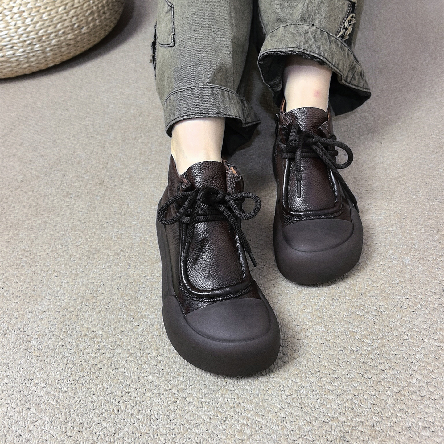 2025秋冬新款真皮软底厚底马丁靴女系带休闲百搭短靴高帮板鞋矮靴