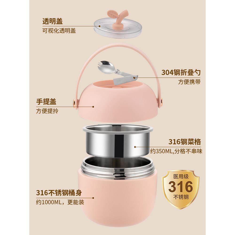 双层保温饭盒316不锈钢便携上班族专用女学生高颜值超长保温饭桶