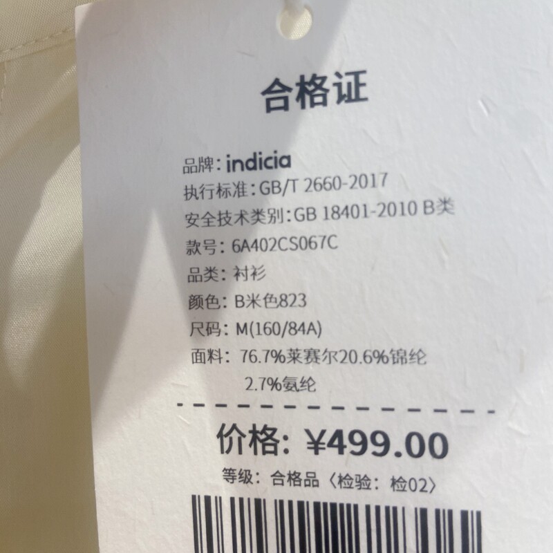 indicia6A402CS067C专柜正品标记女装简约时尚感衬衫吊牌价499