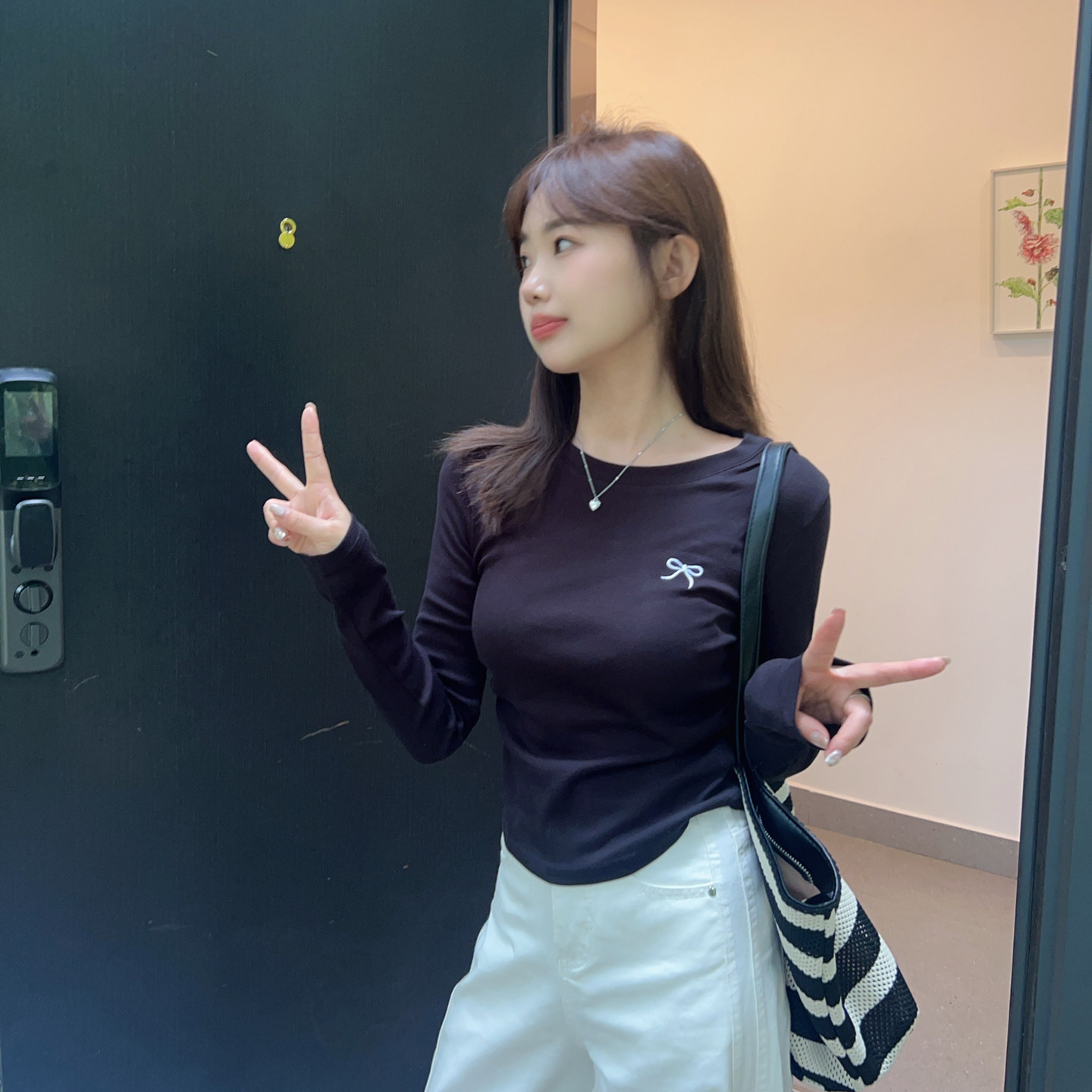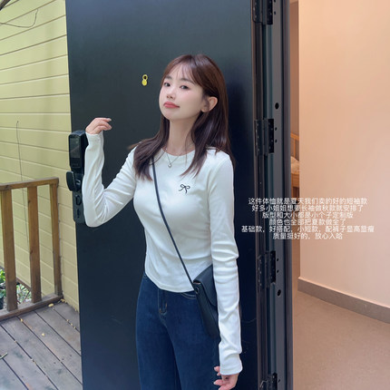 小小家 小个子小码蝴蝶结长袖圆领T恤25秋新款修身基础百搭上衣女