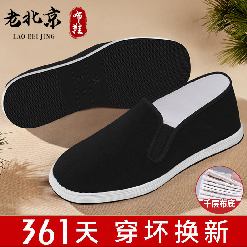 老北京布鞋男一脚蹬传统手工千层底中老年爸爸舒适透气防滑休闲鞋