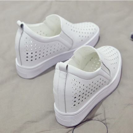 镂空内增高女鞋小白鞋单鞋子女2023新款坡跟百搭显瘦乐福鞋女夏季