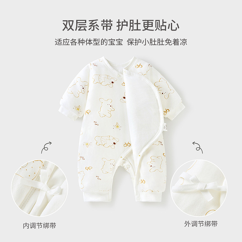 童泰婴儿连体衣秋冬季纯棉夹棉新生儿衣服初生宝宝蝴蝶哈衣爬服