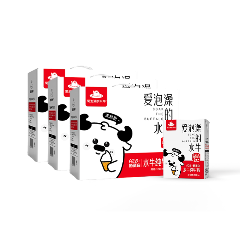 爱泡澡的水牛纯牛奶A2β-酪蛋白200ml*10盒*3箱儿童营养早餐奶