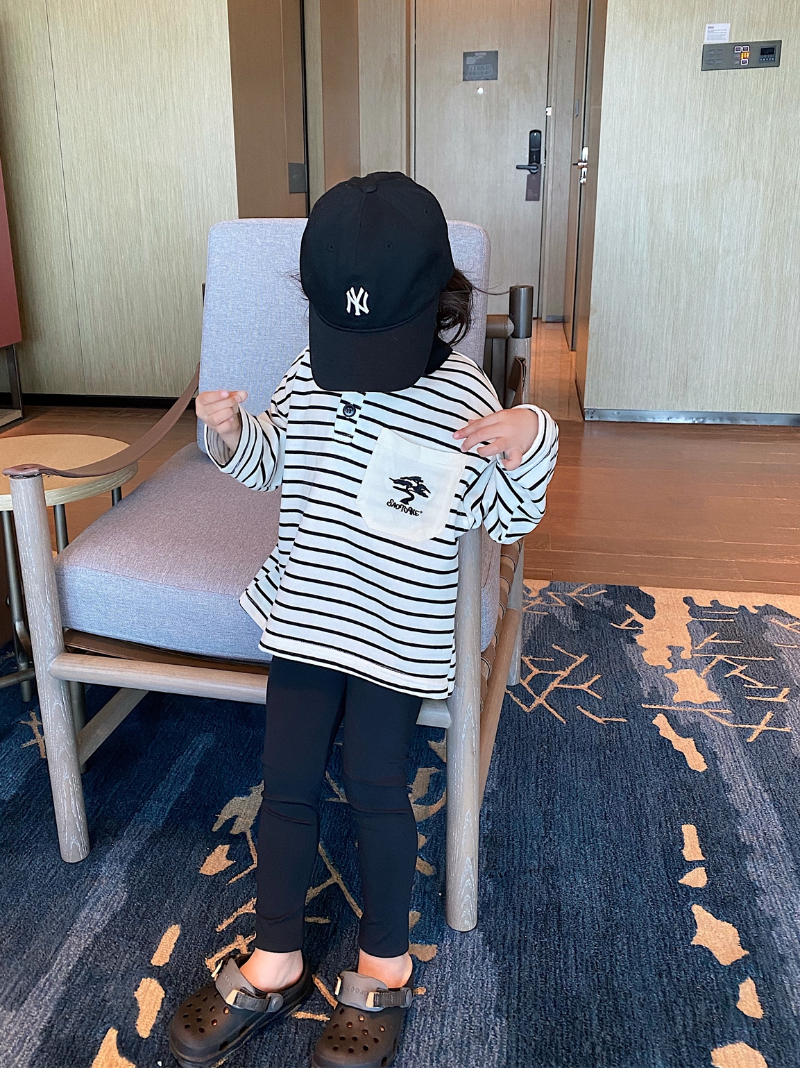 YUSONG◆2024春秋新款男宝宝韩版休闲女儿童装黑白条纹polo领T恤