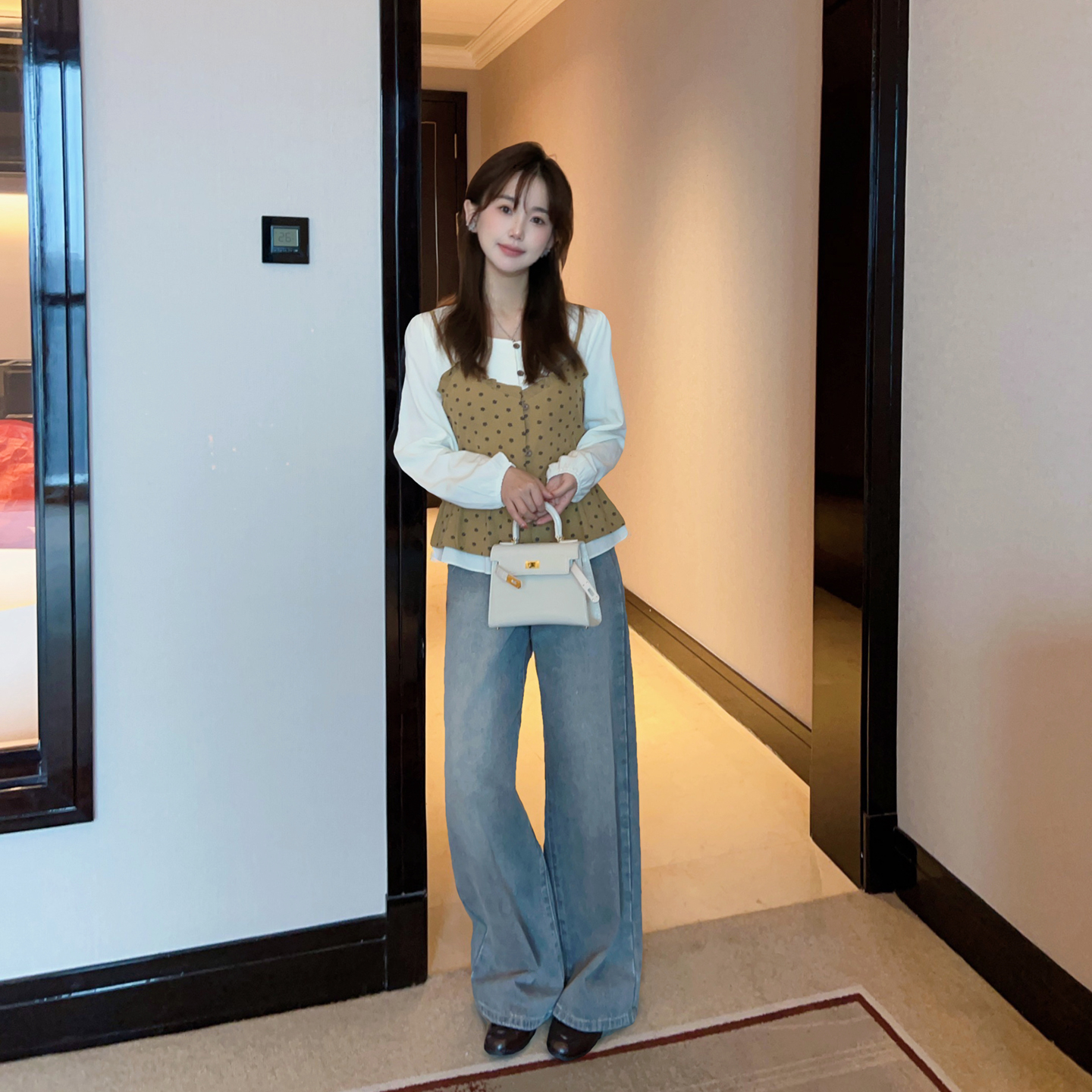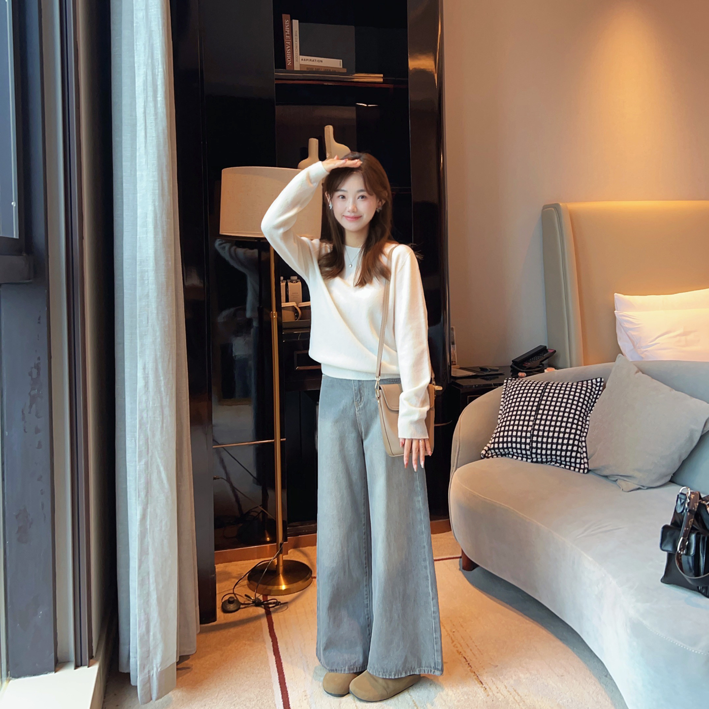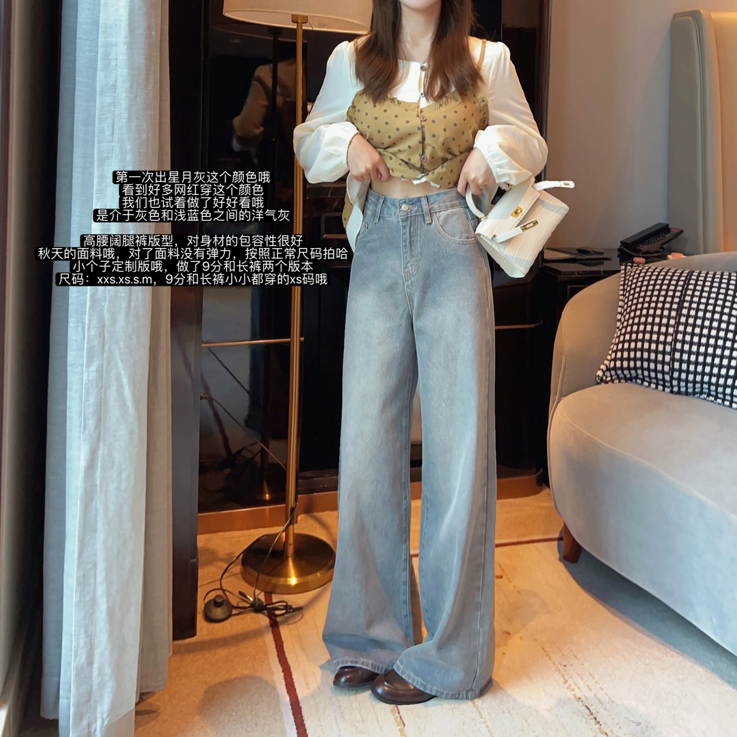 小小家 小个子小码星月灰阔腿牛仔裤显高瘦大摆宽松直筒长款裤子