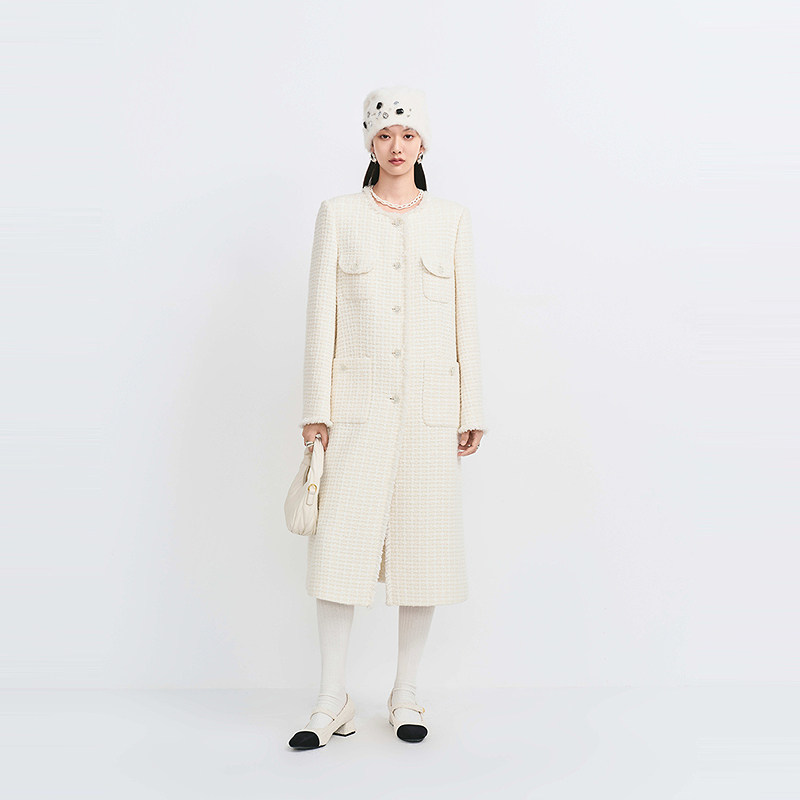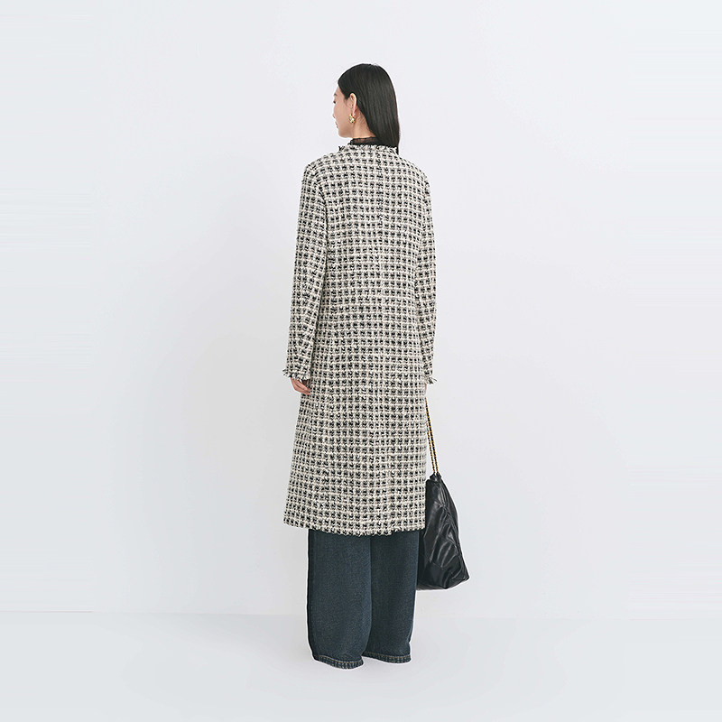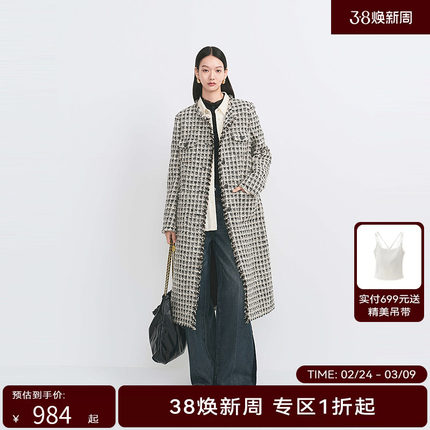 【商场同款】HPLY荷比俪冬季新款女小香风花呢格宽松H型大衣