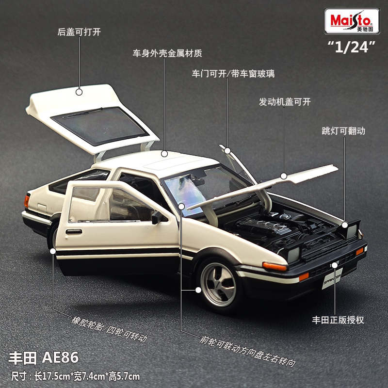 美驰图1:24丰田AE86 头文字D车模仿真合金汽车模型男孩小汽车礼物