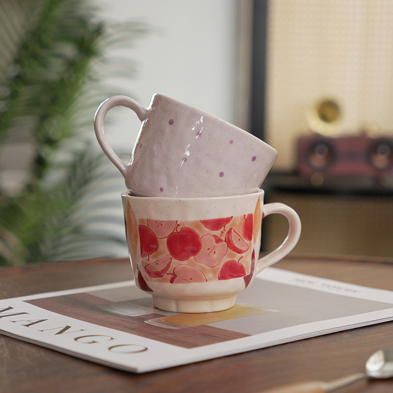原创苹果山竹马克杯陶瓷杯子创意手绘咖啡杯家用牛奶杯喝水杯