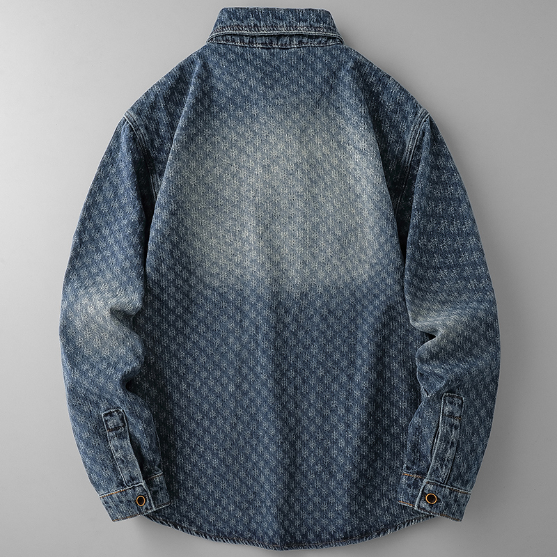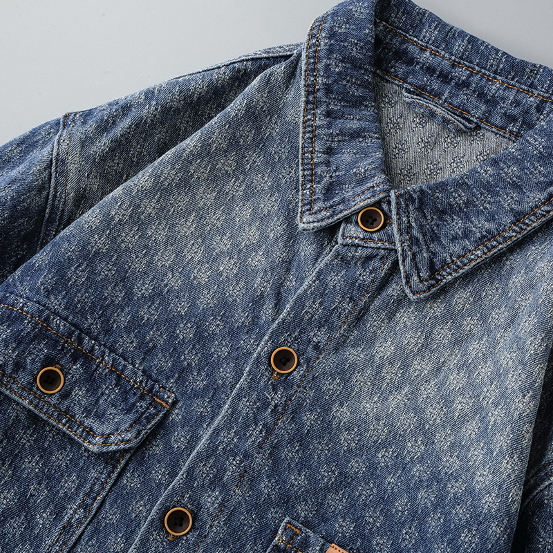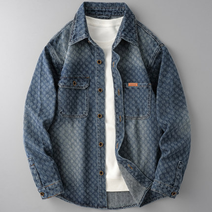点霸美式休闲牛仔衬衫外套男2025春秋高级感提花潮流宽松衬衣夹克