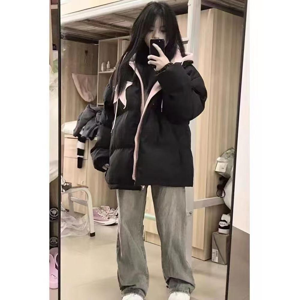冬季150cm小个子XXXS显高155女装假两件连帽棉服外套女休闲面包服