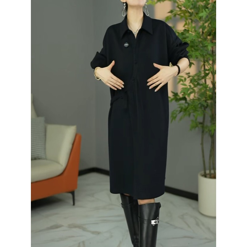 慵懒端庄大气欧版宽松连衣裙女2025秋冬季新款修身显瘦中长款裙子