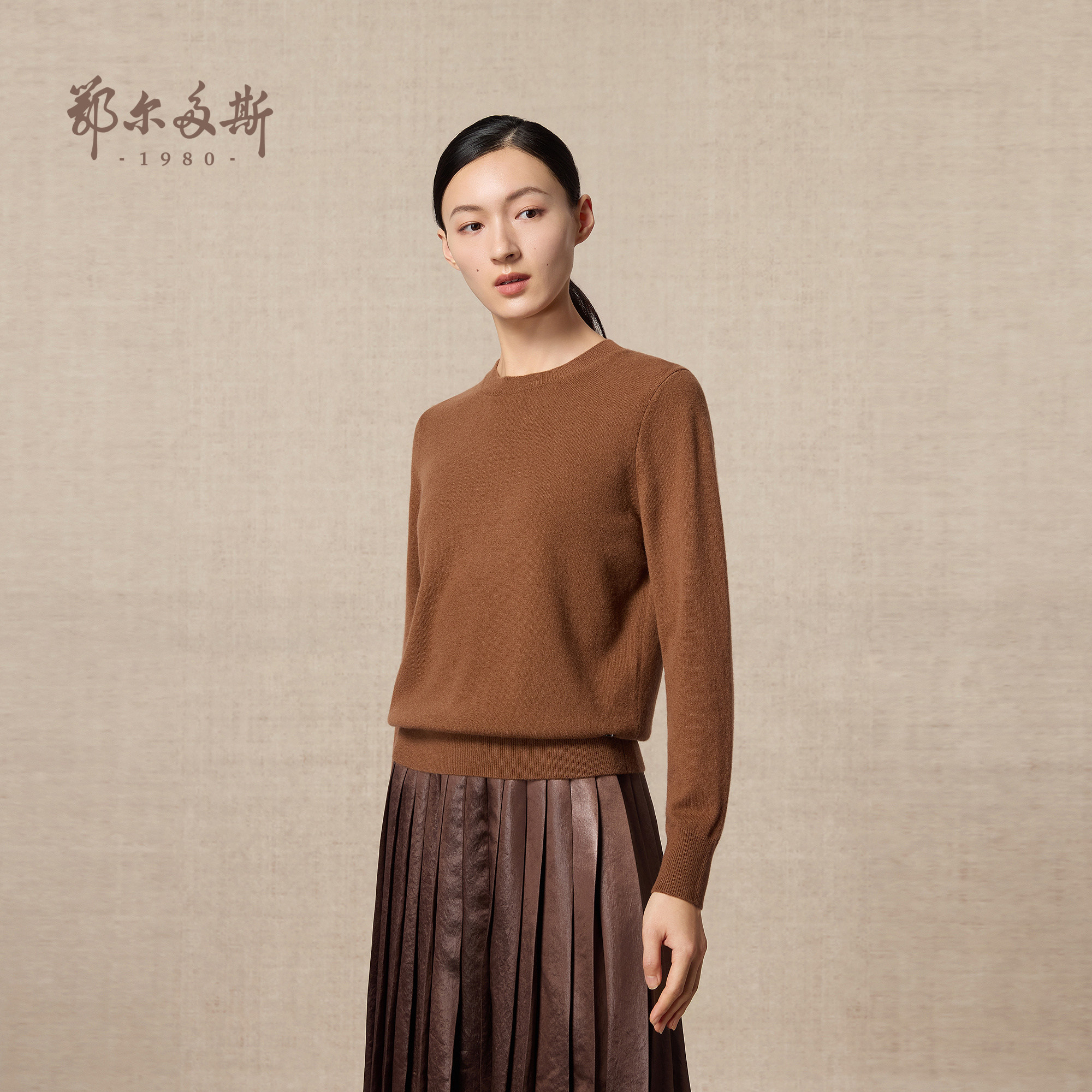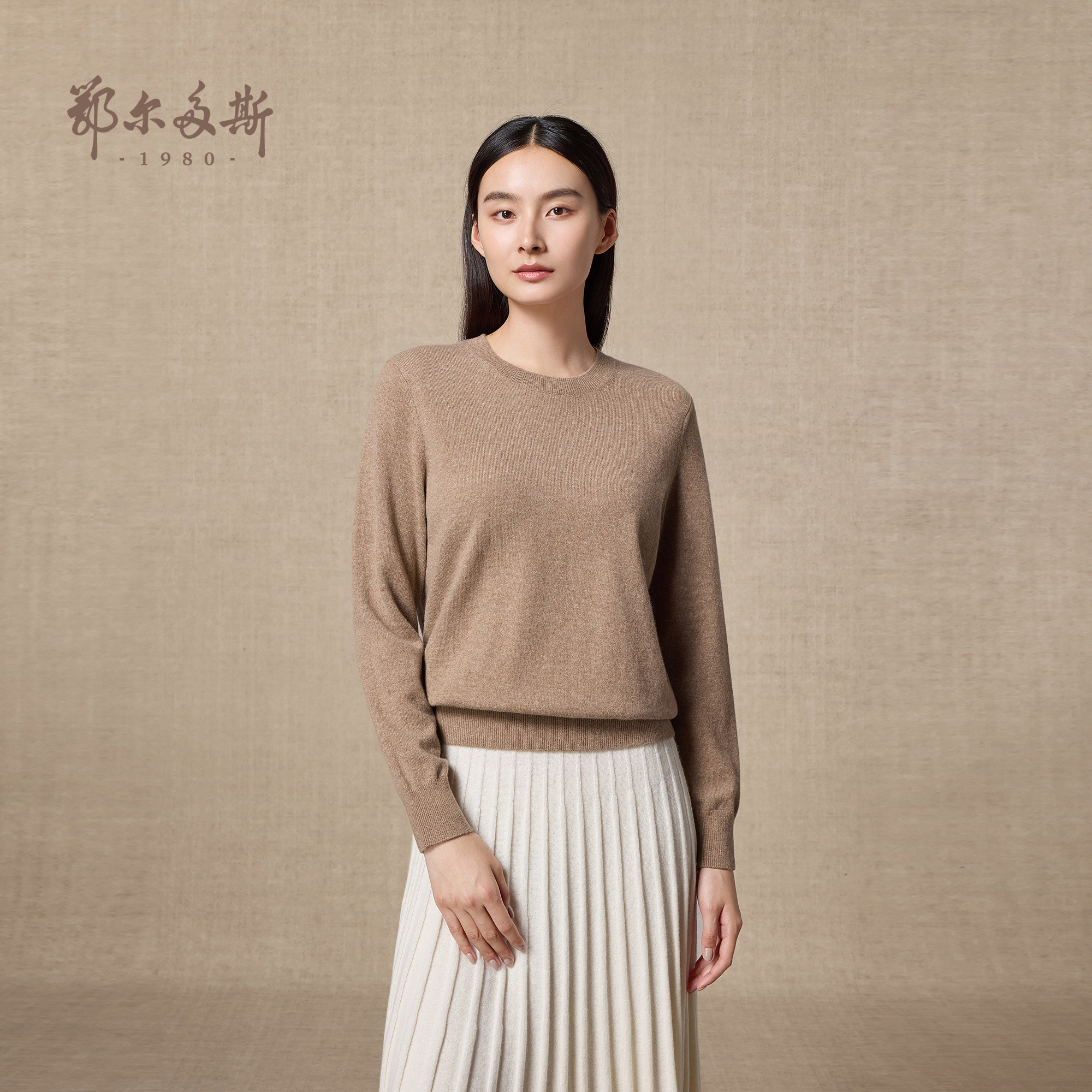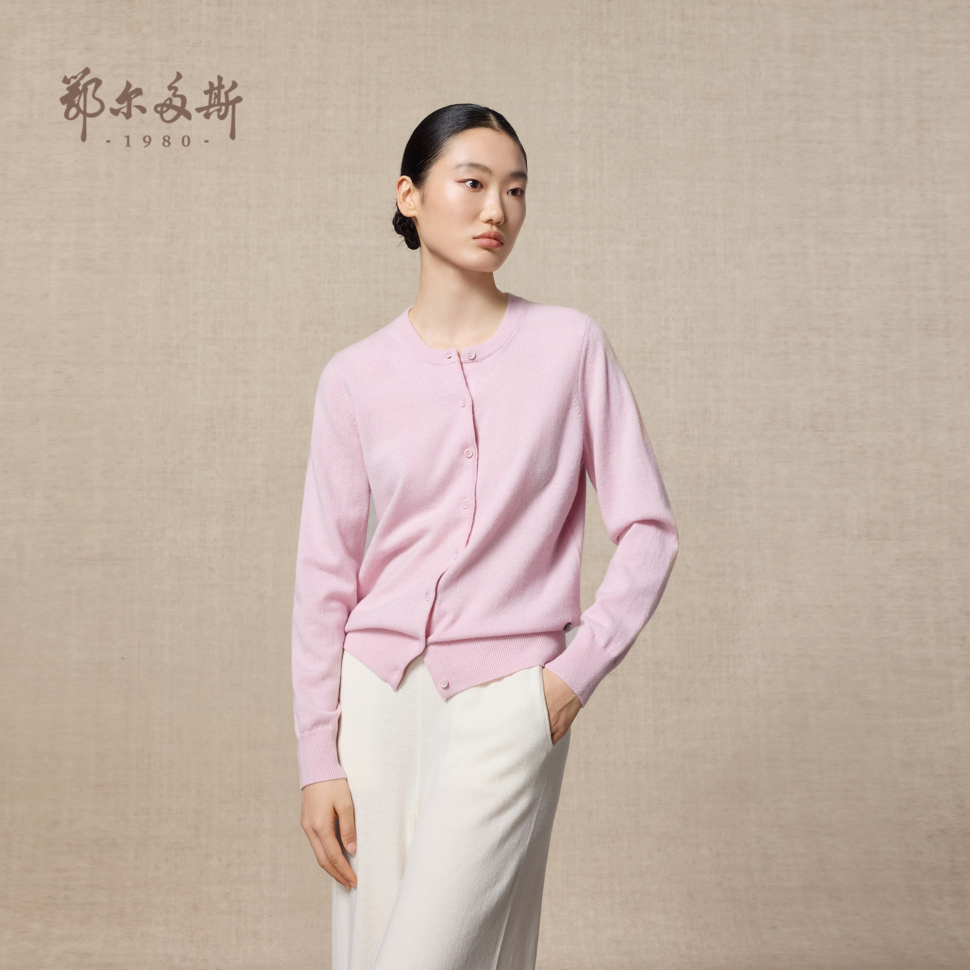 鄂尔多斯1980 女款圆领羊绒开衫/套衫25年秋冬新品纯色百搭针织衫