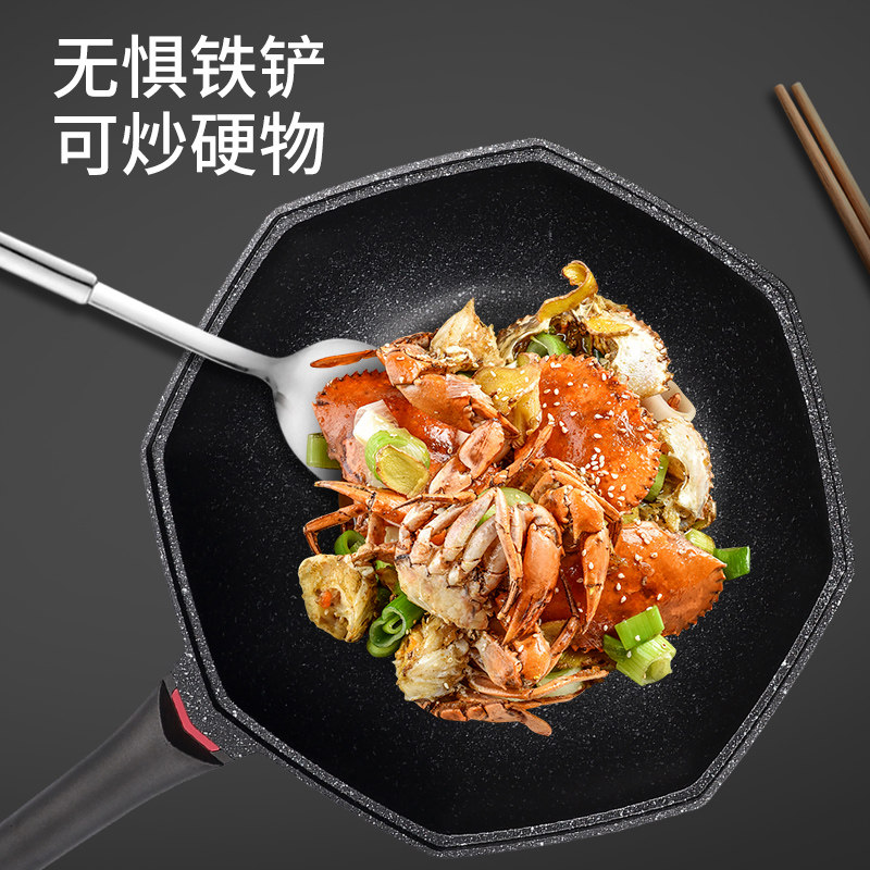 八角锅麦饭石锅不粘锅炒锅家用微压锅炒菜锅不沾燃气灶专用电磁炉