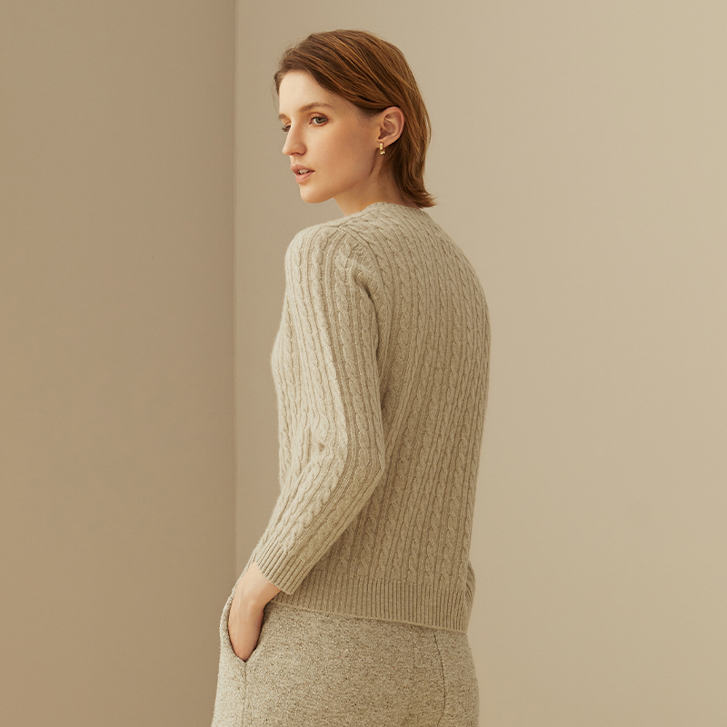 鹿王100%羊绒衫女士圆领变化组织女套衫舒适透气柔软纯色简约新款