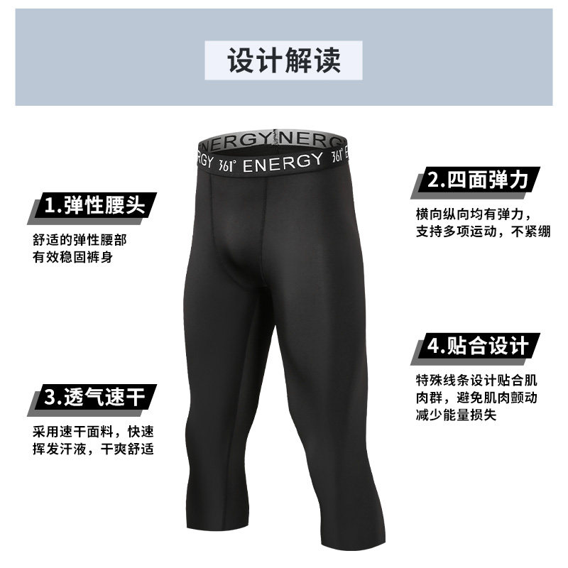 361篮球七分紧身裤男高弹速干压缩裤田径训练跑步运动健身打底裤