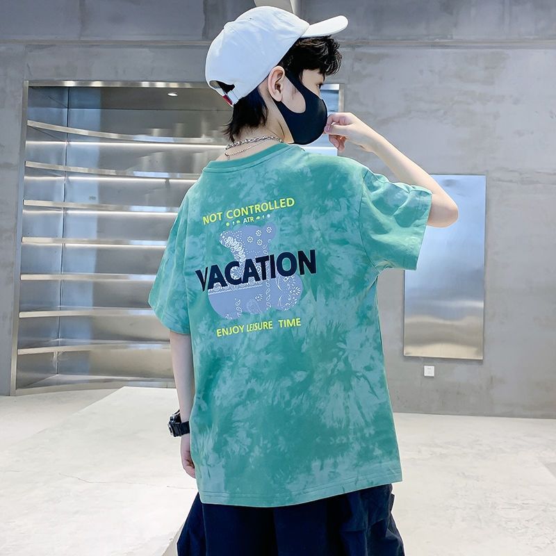 男童短袖夏季中大童2025新款儿童嘻哈扎染半袖夏装衣服男孩上衣潮