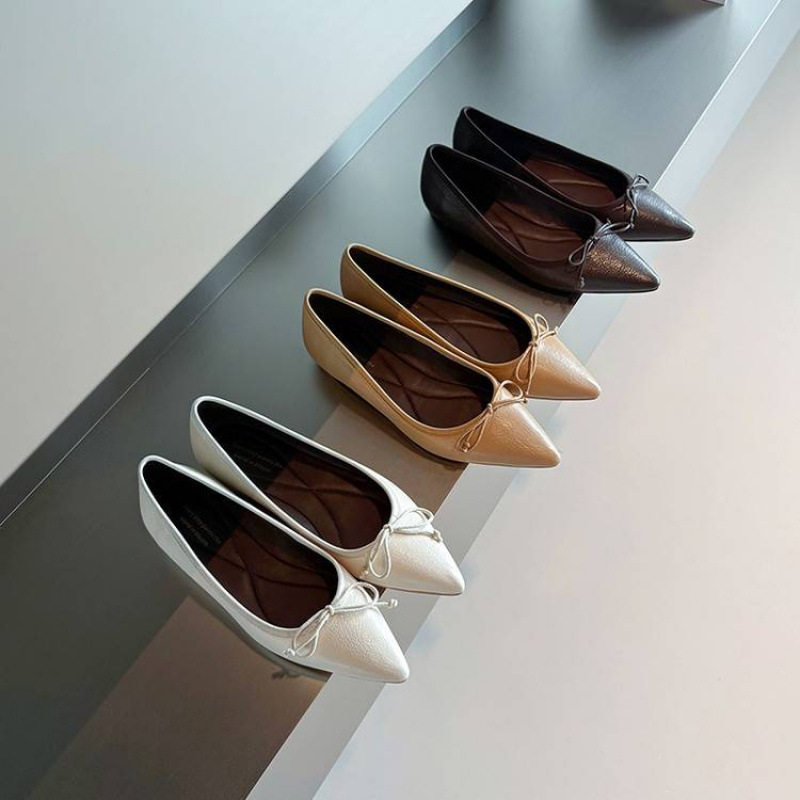 羊皮~春秋甜美文艺蝴蝶结尖头内增高单鞋柔软真皮显瘦平底女鞋