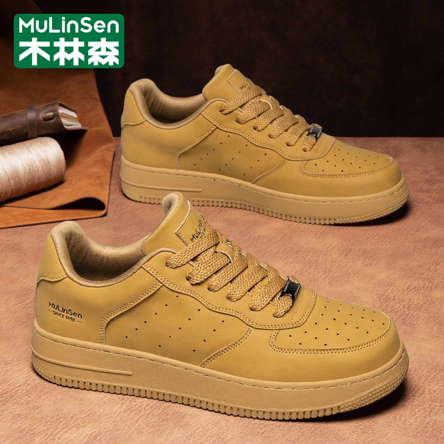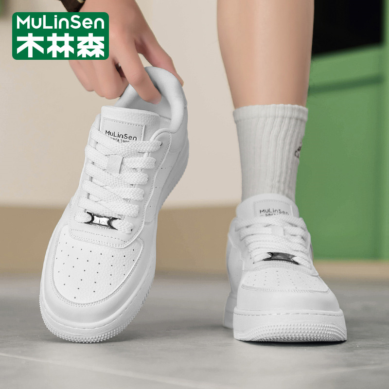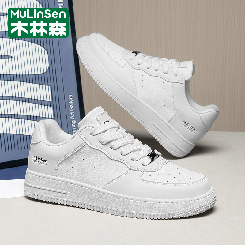 木林森男鞋2026年春季运动休闲百搭板鞋商务西装厚底增高小白皮鞋