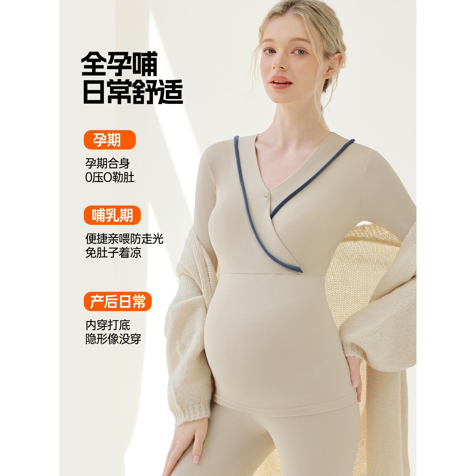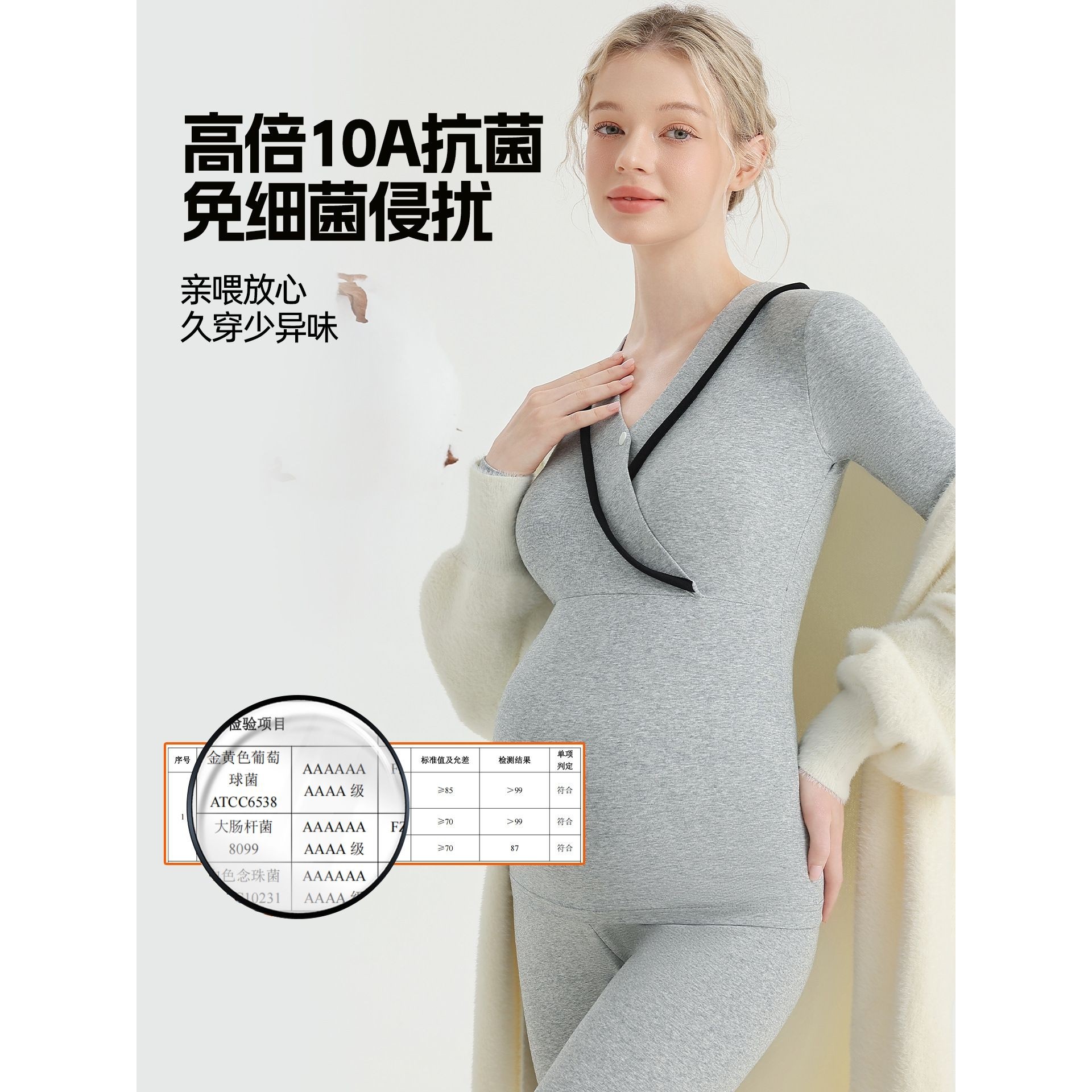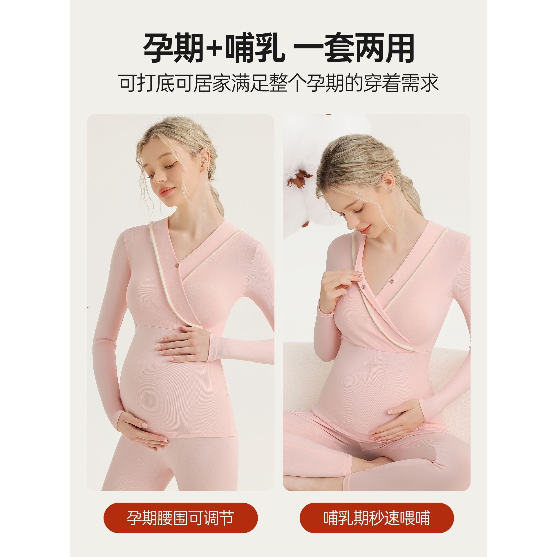 罗丽丝孕妇秋衣秋裤套装纯棉月子服睡衣产后喂奶免穿文胸秋冬保暖