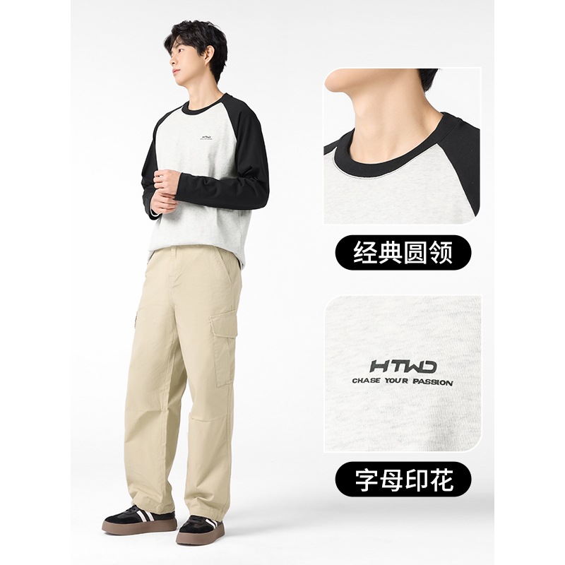 热风男士打底衫2025年秋季新款基础款白色长袖上衣内搭黑色T恤