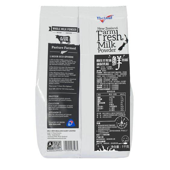 新西兰进口奶粉纽仕兰鲜奶粉成人全脂奶粉鲜牛奶调制乳粉1kg袋装