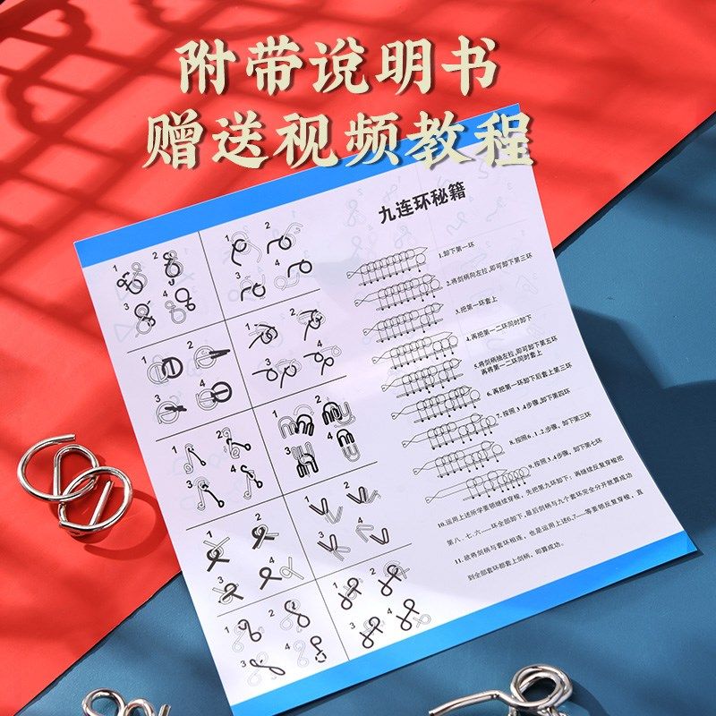 九连环儿童益智鲁班锁孔明锁全智力解扣件解锁环小学生
