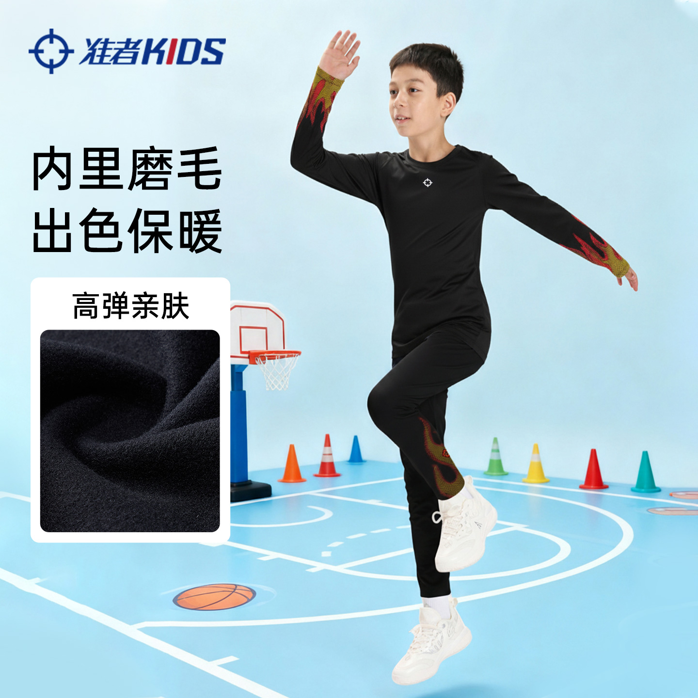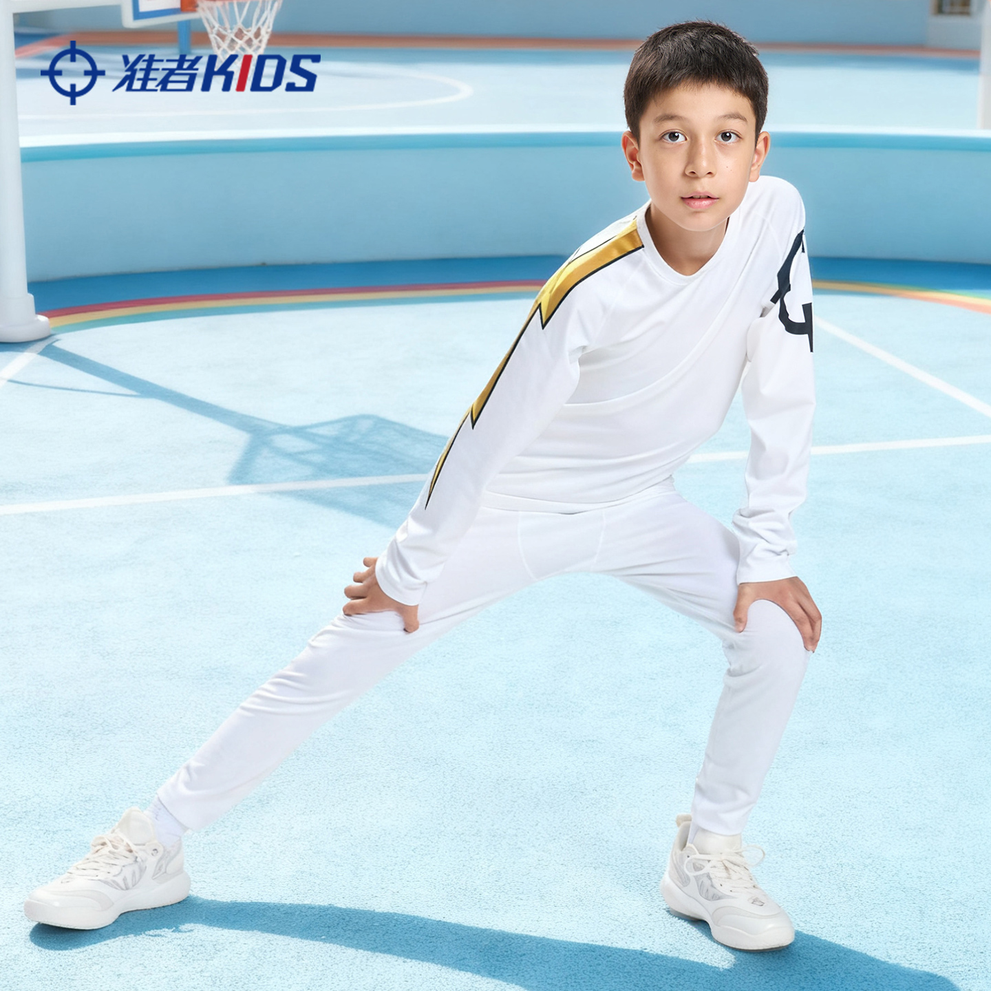 准者儿童紧身衣训练服男童高弹速干衣篮球足球运动秋冬加绒打底衫