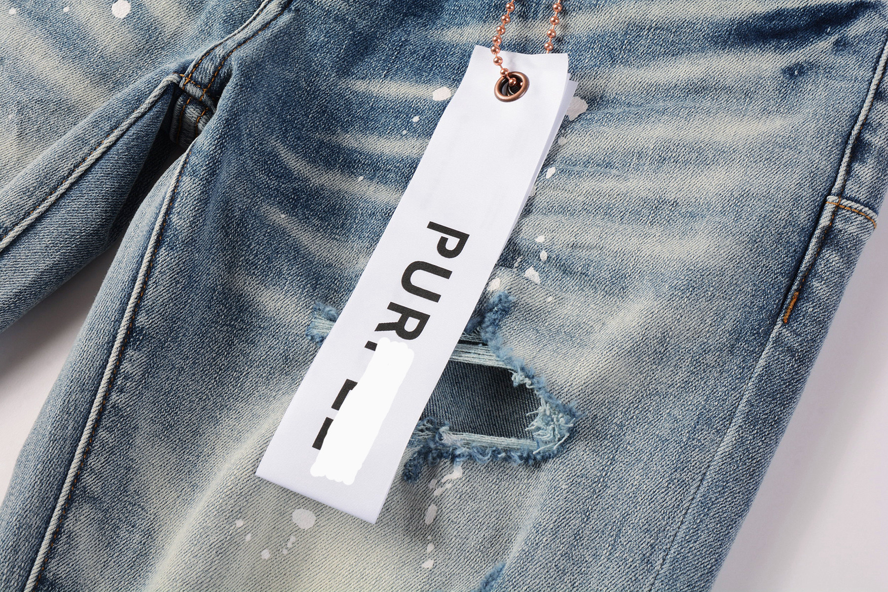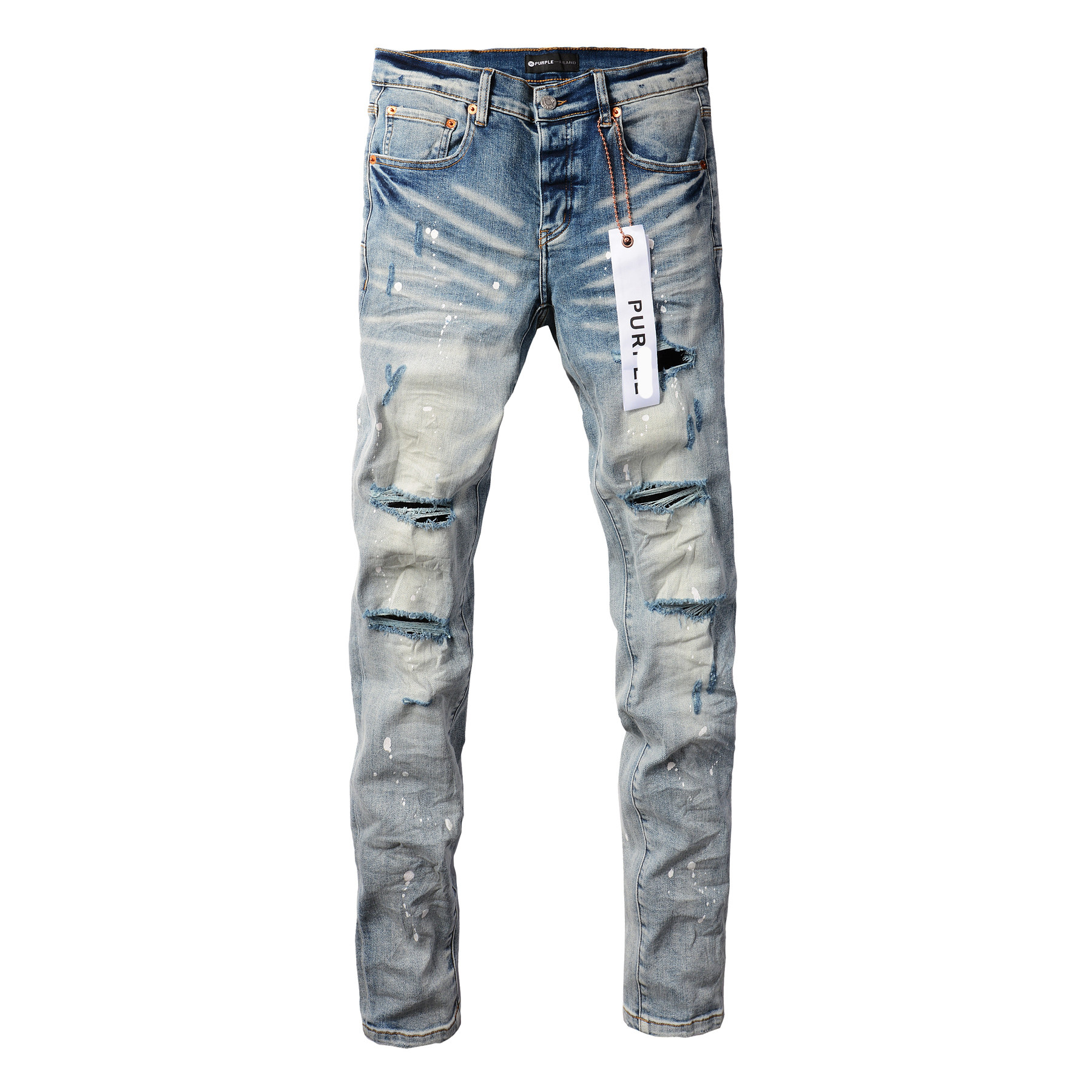 PUR秋季新款潮牌浅色泼墨涂鸦破洞牛仔裤男士弹力修身小脚裤子潮