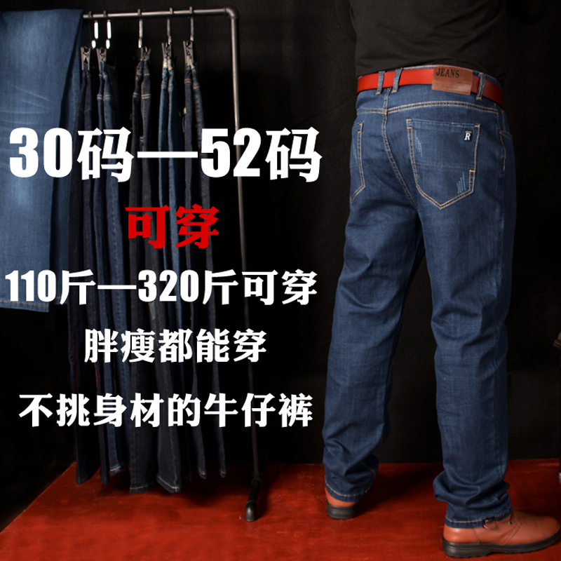 秋冬厚款加大码宽松牛仔裤男直筒弹力长裤加肥加大休闲高腰肥佬裤
