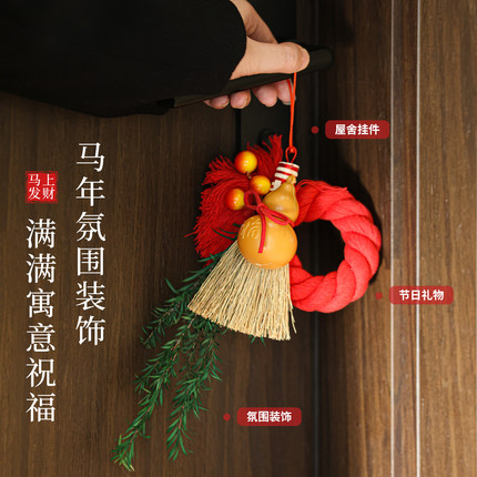 新年装饰挂件2026款马年春节布置门把手过年挂饰乔迁之喜扫把挂饰
