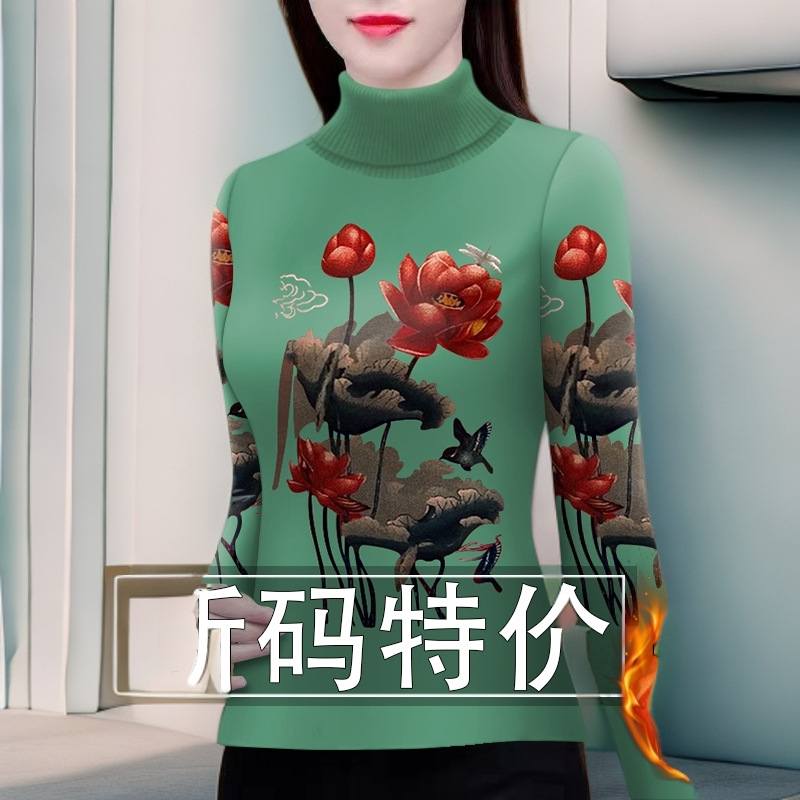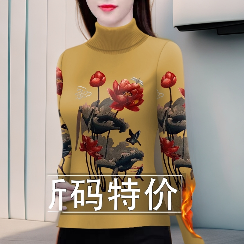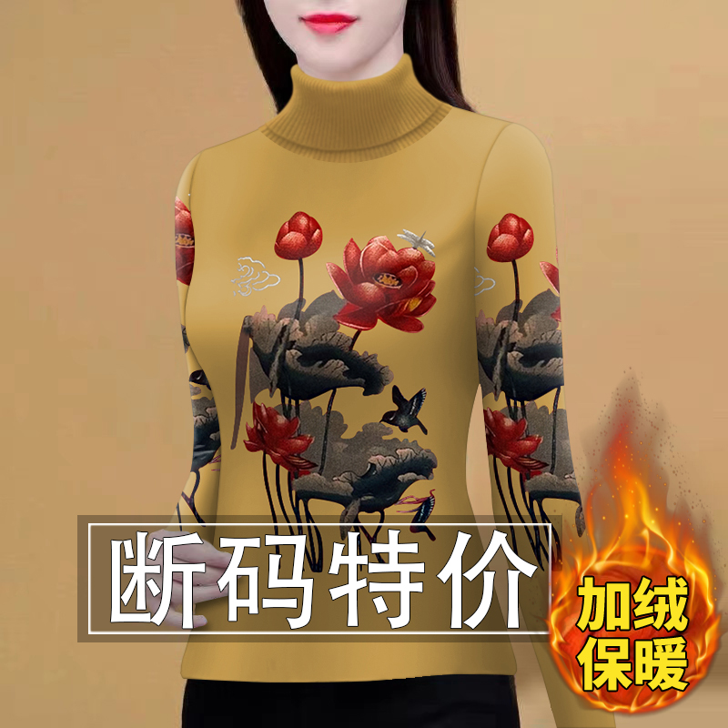 秋冬新款加绒加厚高领t恤衫女中国风内搭长袖t恤显瘦保暖上衣潮