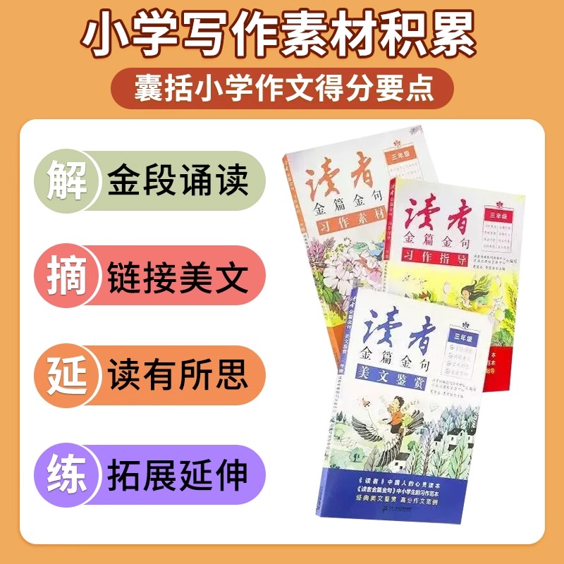 读者金篇金句习作指导素材美文鉴赏三四五六年级通用阅读课外书小学高分范文好词好句好段优美句子素材积累大全作文写作技巧指导书