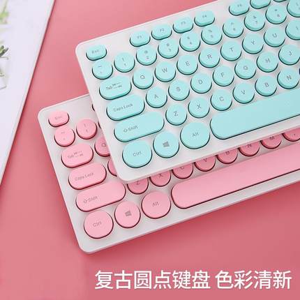 超薄无声静音有线键盘巧克力游戏家用笔记本电脑发光蓝粉色女生可