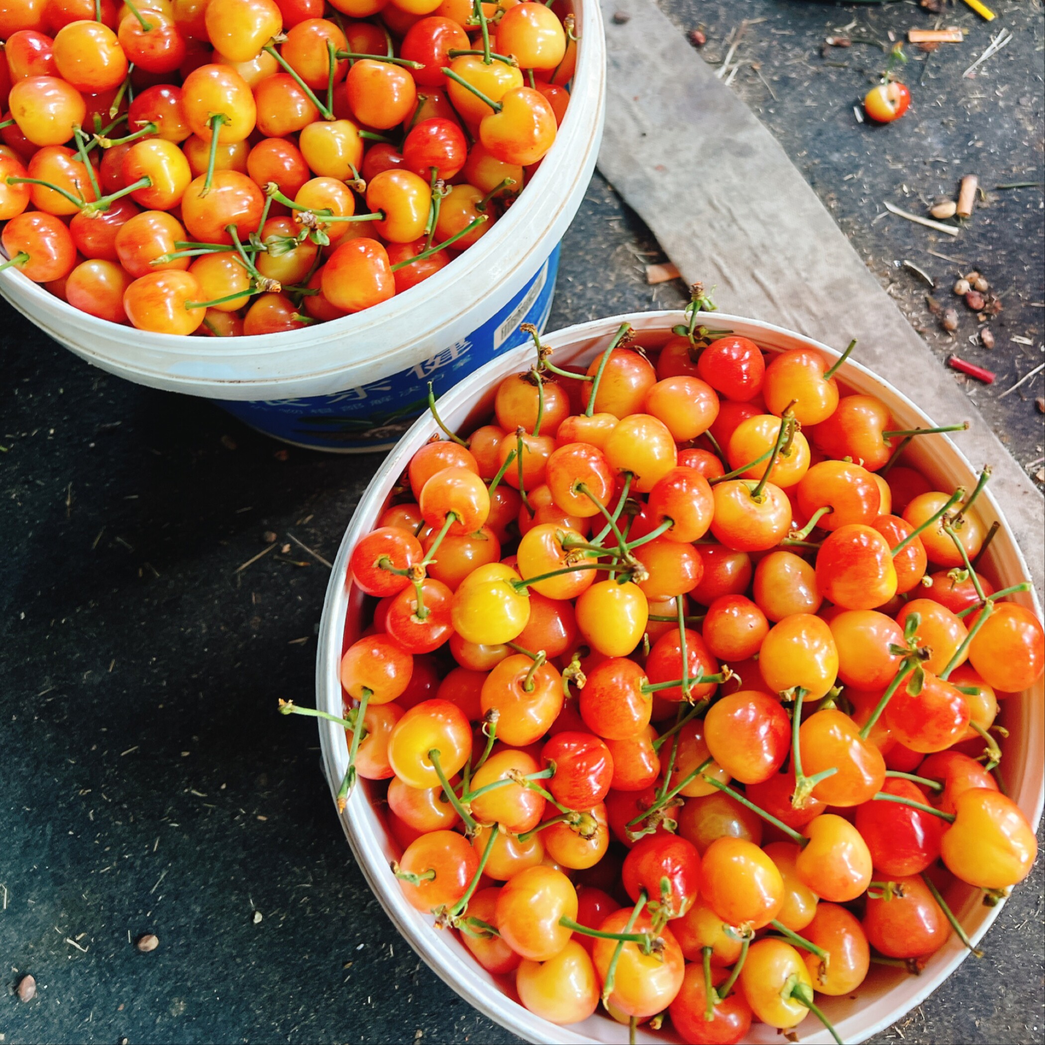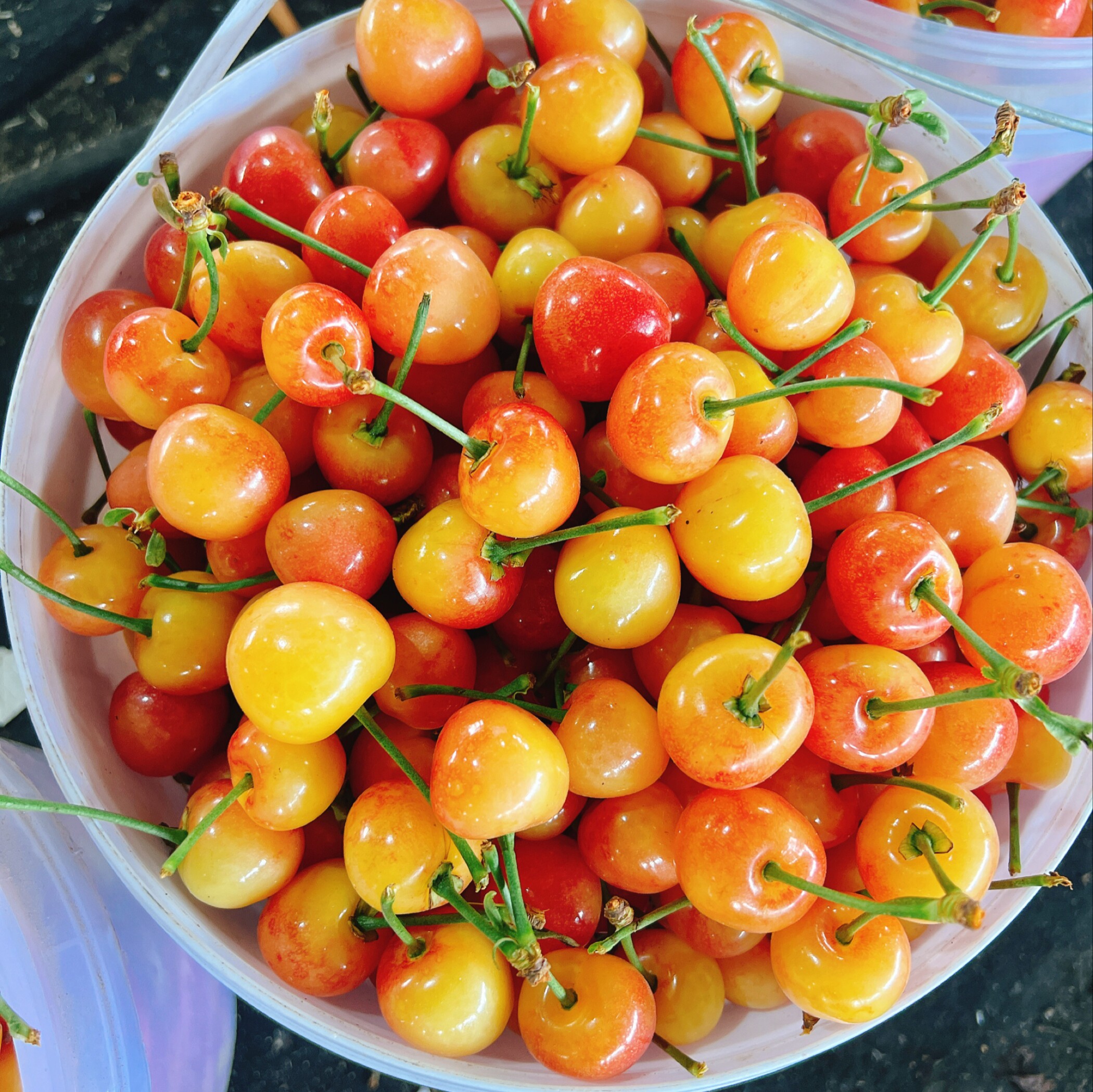 新鲜美味香甜的黄水晶樱桃