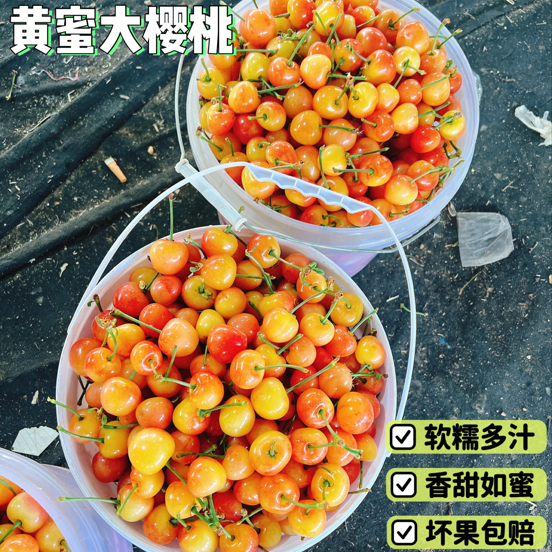 山东黄蜜大樱桃3斤烟台黄水晶国产雷尼车厘子孕妇水果现摘小樱桃