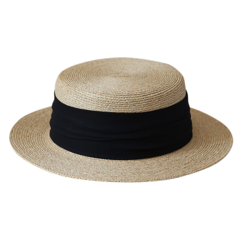 平顶草帽女夏精致麻布装饰