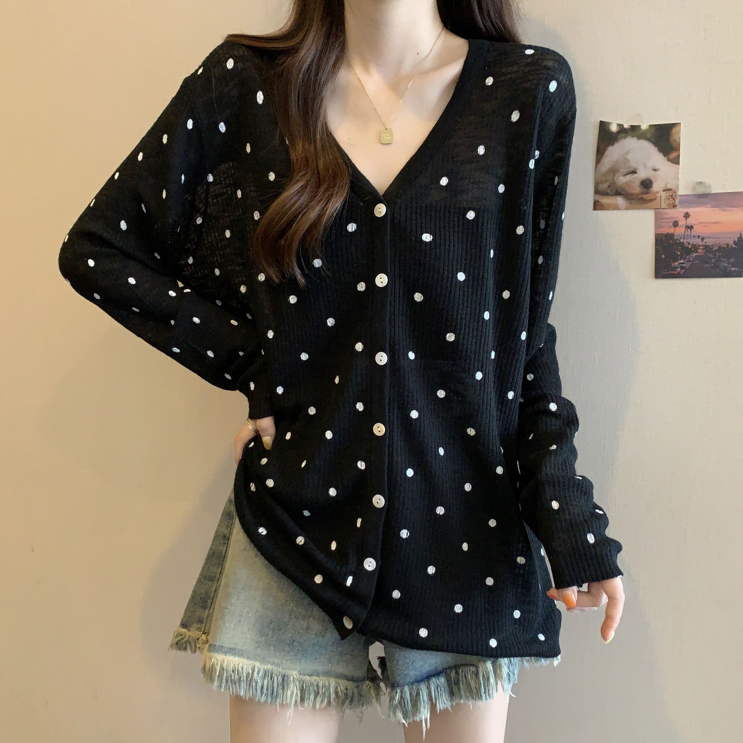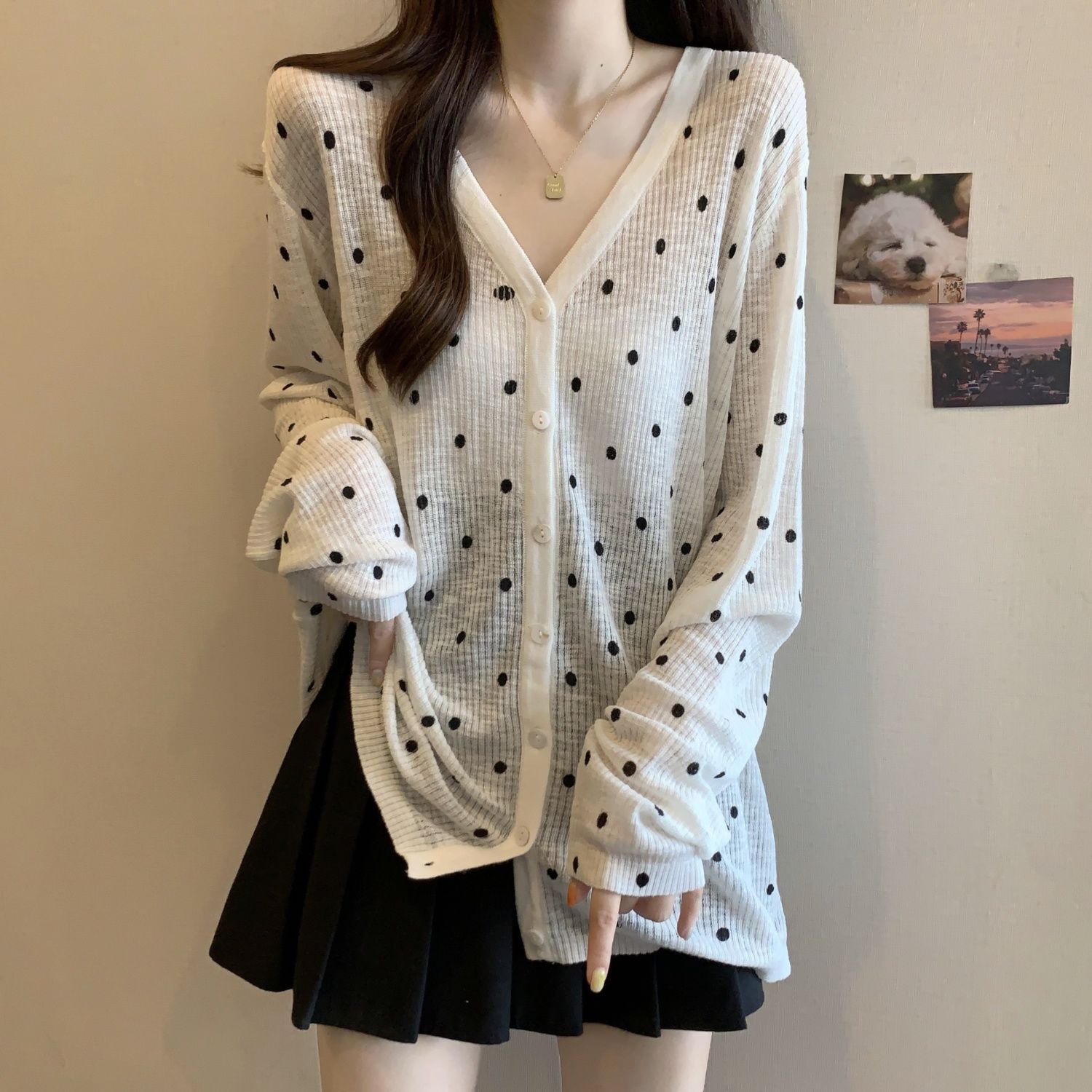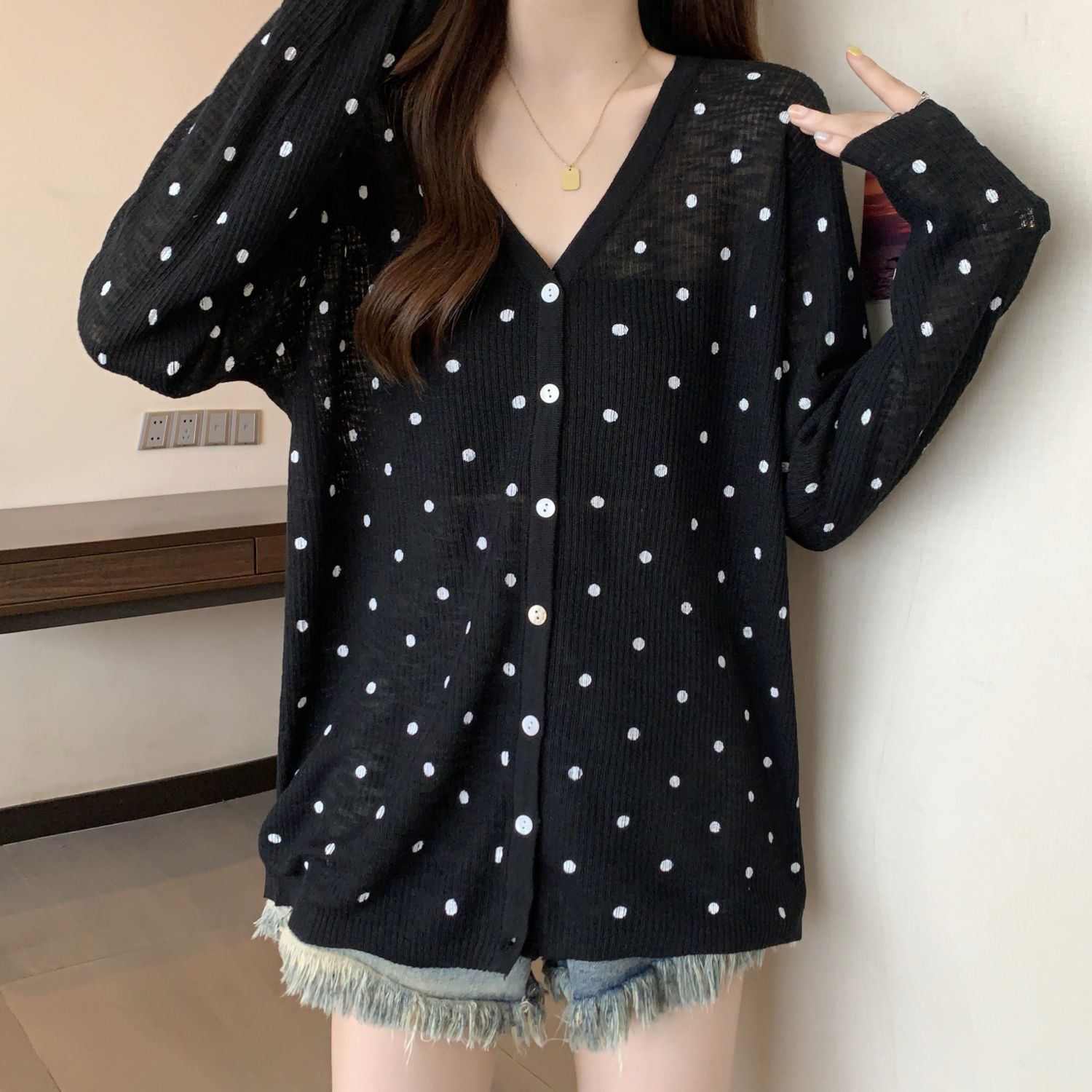 大码女装夏季新款胖mm防晒长袖波点针织开衫薄款防晒冰丝外搭上衣