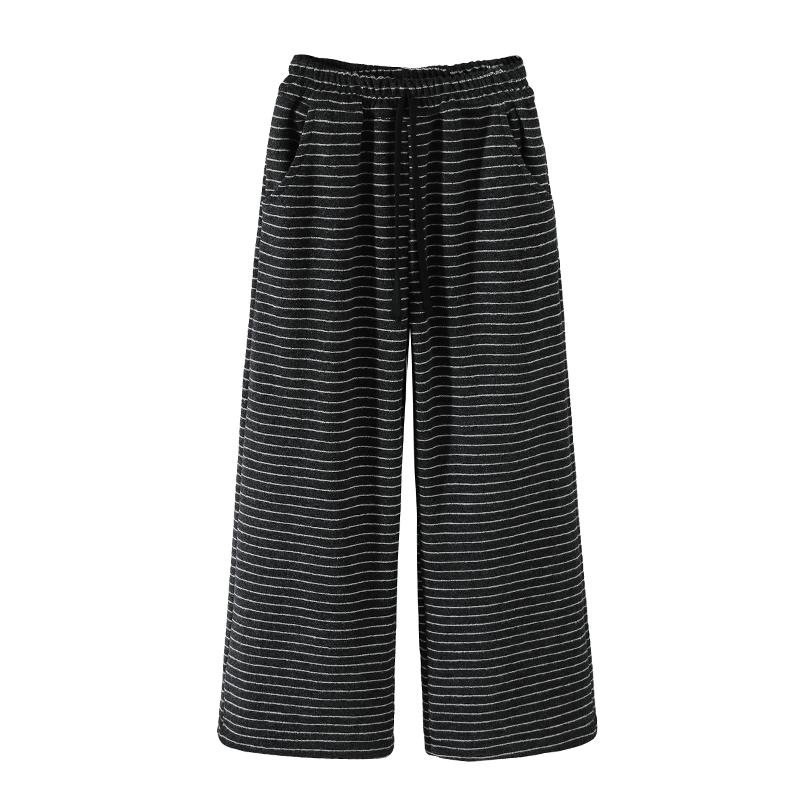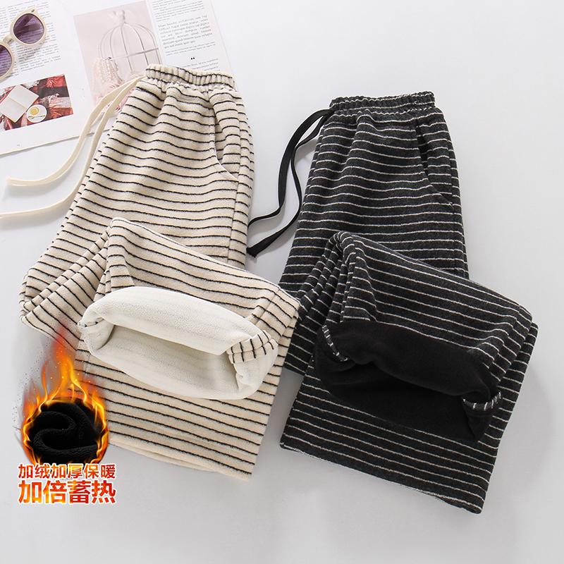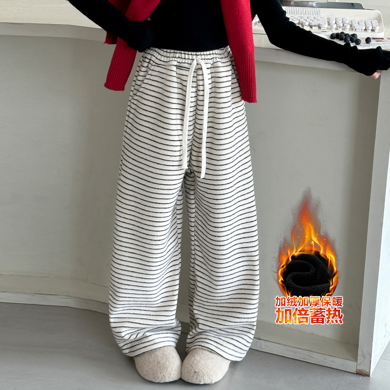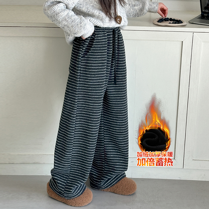 女童加绒条纹阔腿裤秋冬儿童百搭宽松一体绒休闲裤冬季直筒长裤子