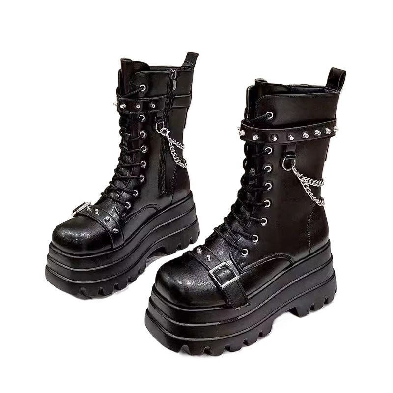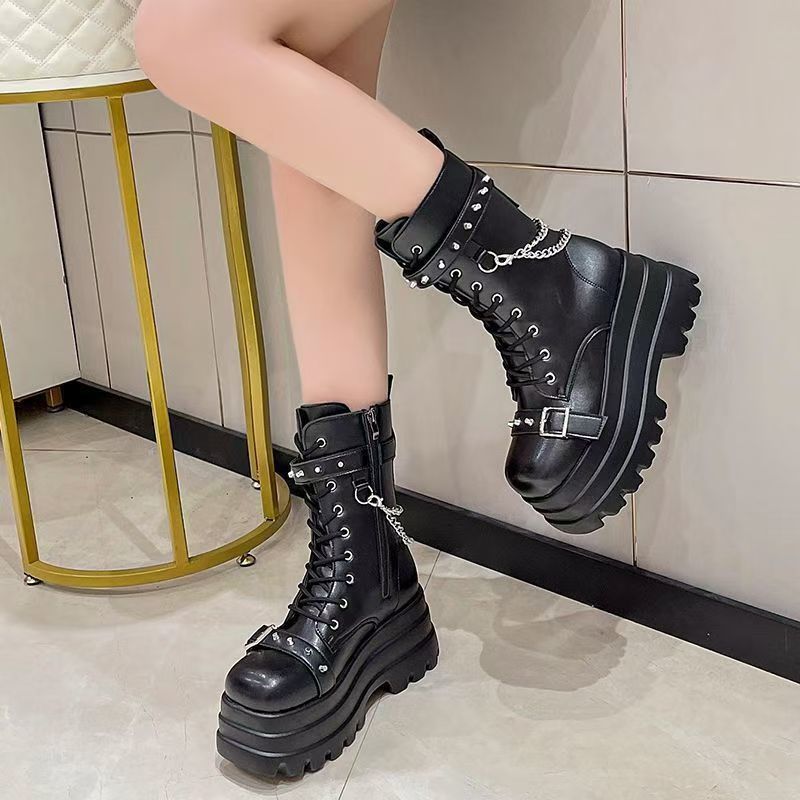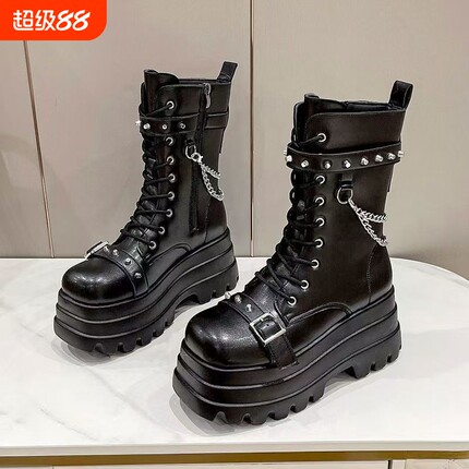 cos机车增高鞋马丁靴2024新款时尚秋季短靴子女厚底中筒靴英伦风