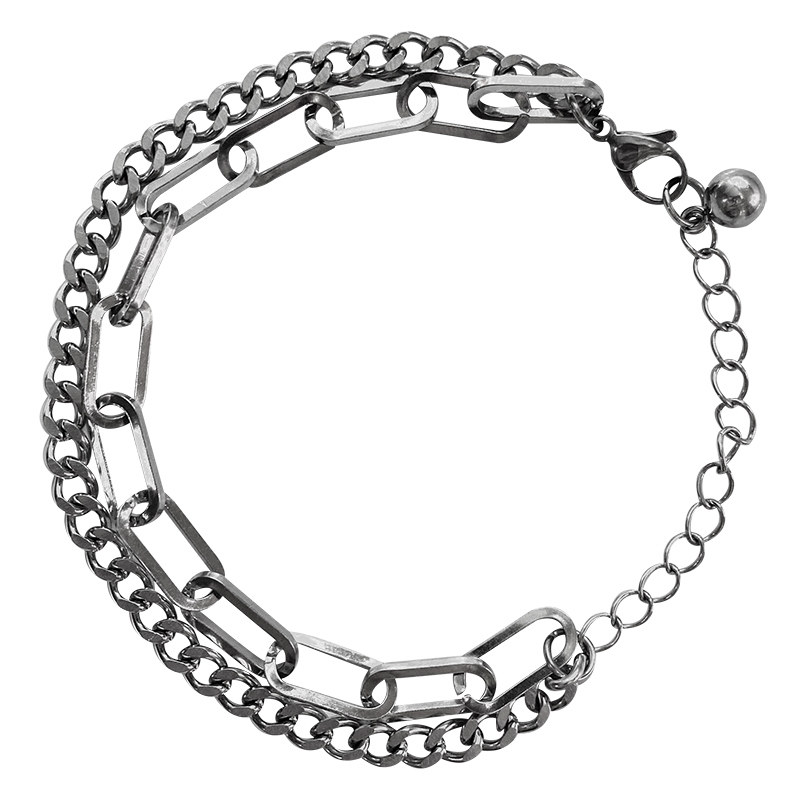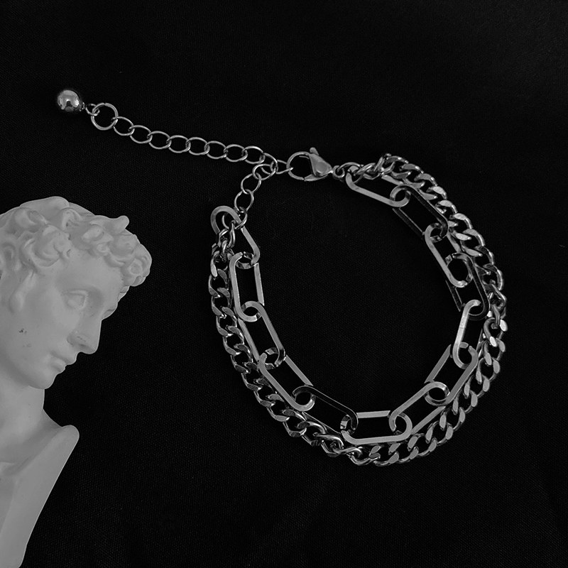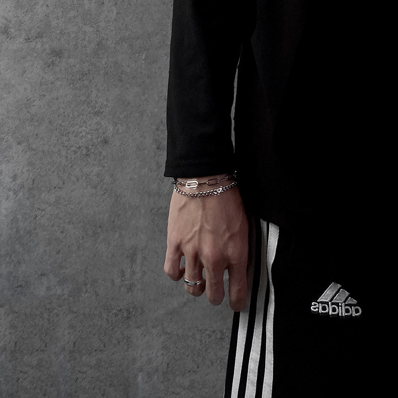 原创设计韩版拼接双层手链男女小众嘻哈潮简约冷淡风个性钛钢