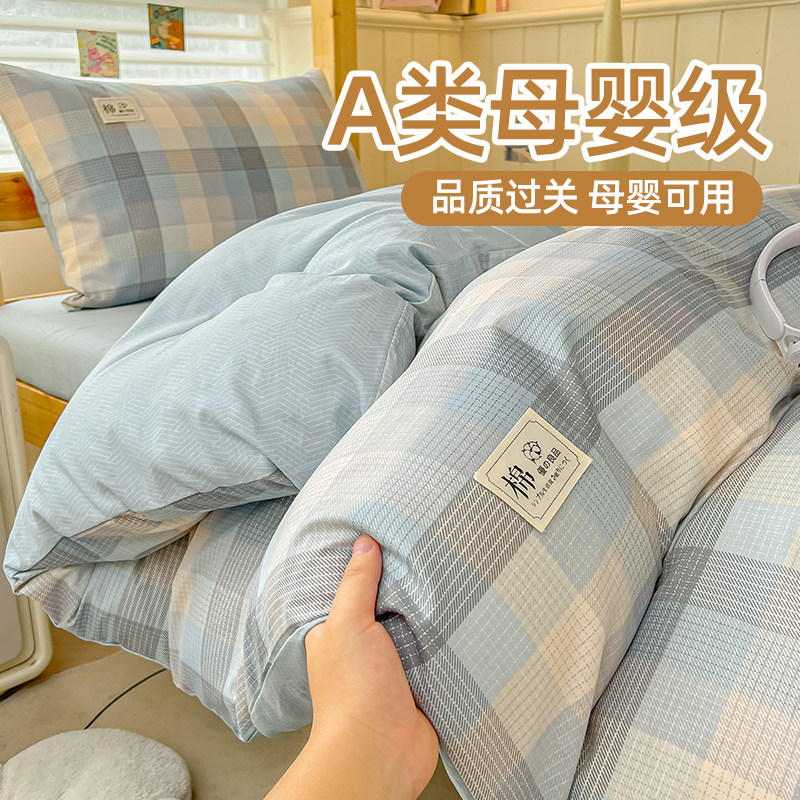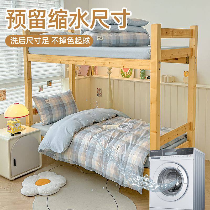 2025新款纯棉三件套大学生宿舍100%全棉床单床笠被套单人床上用品