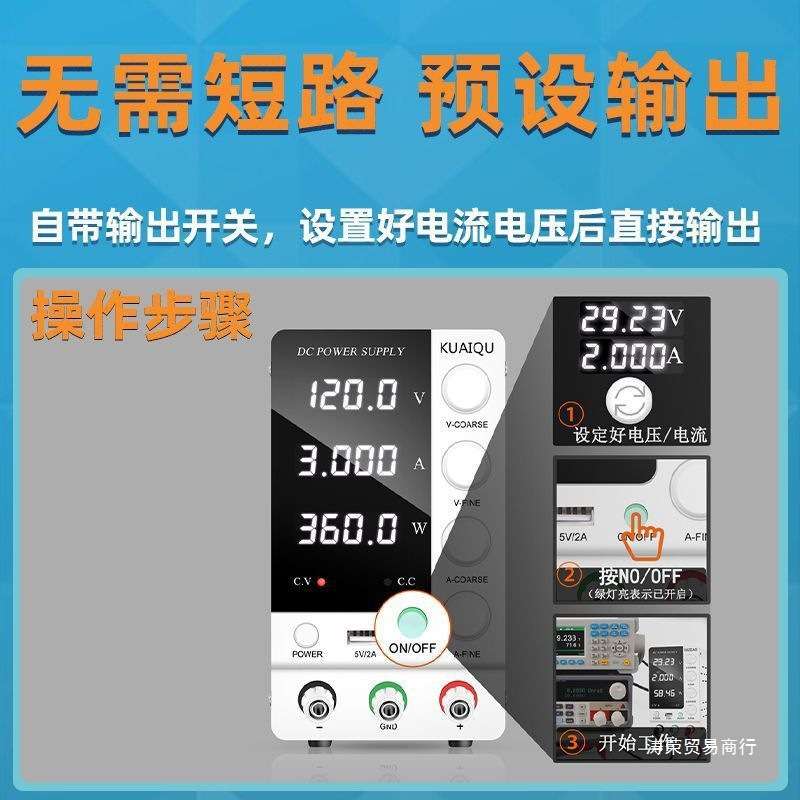 KUAIQU可调节直流稳压电源高精度四位显示电镀电解维修电压测试