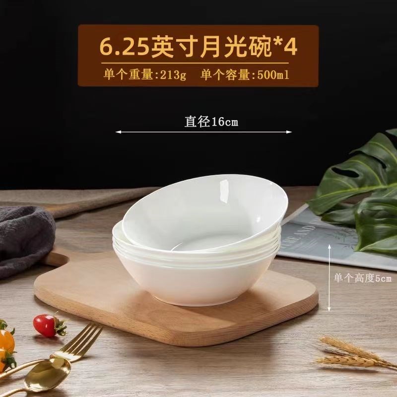 优质纯白无铅骨瓷家用大面碗浅口蒸菜碗米饭碗简约釉下彩陶瓷餐具